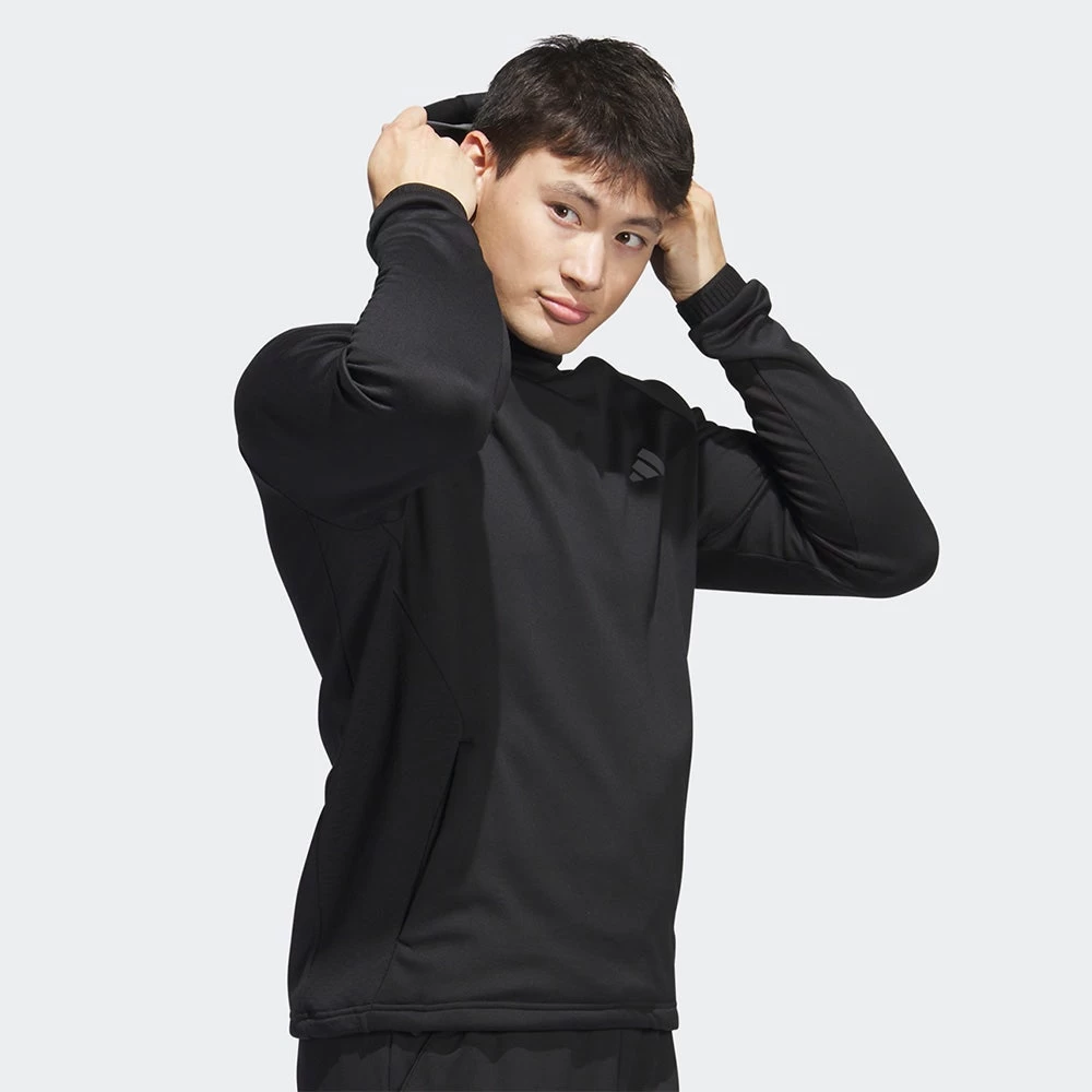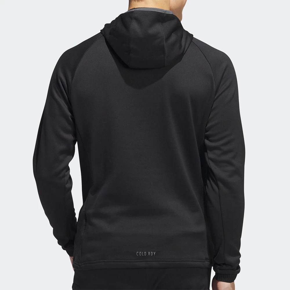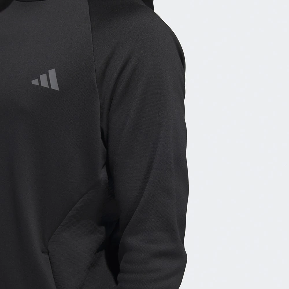 This adidas mid layer pullover has been designed with the modern day golfer in mind & is ready to become your new favourite golf hoodie this season. Its sporty and athletic silhouette is super easy on the eye with textured side inserts adding to the look, while the high contrast adidas Performance logo is located on the chest & matches with the trim detailing perfectly. Signature Cold.RDY technology is utilised within the double layered fabric with a fleece interior for exceptional warmth without the bulk, while the high degree of stretch also ensures maximum freedom of movement and flexibility when you need it most. One of the best mid layer hoodies on the market thanks to the versatile styling, high performance functionality & exceptional value for money on offer.