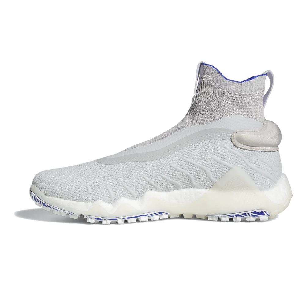 These newly refreshed adidas CODECHAOS golf shoes have landed and look as clean as ever – especially in this colour combination. The foot-hugging, sock-like fit of an adidas PRIMEKNIT upper adapts to the natural shape of your foot to support powerful drives, while the spikeless Twist Grip outsole holds firm as you pivot though your swing. Full length BOOST cushioning needs no introduction and will ensure that you get the same step-in comfort and responsive cushioning which is renowned the world over, while the Insite sockliner will also enhance the comfort factor once more. The synthetic upper boasts a multi layered construction which offers lightweight comfort and breathability along with reliable waterproof performance, while the introduction of a soft coating atop the main body of the shoe now provides additional stability and weather protection. The new outsole features spikeless “Chaos” traction with unparalleled grip thanks to the “TwistGrip” TPU inserts, while the soft feel of the durable rubber would also allow these golf shoes to be worn comfortably on hard surfaces away from the course. Laceless and bold, these adidas Codechaos golf shoes let you lead the way with groundbreaking style and full Codechaos performance.