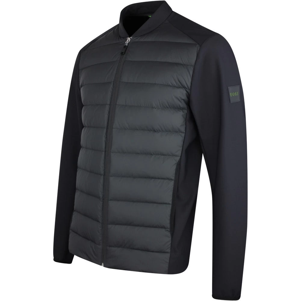 This brand new performance golf jacket comes from the BOSS collection for Spring ’23 and would be a worthy addition into your jacket rotation for on & off the course this season. It features quilted panels the front of the body with a lightweight down filling (ethically sourced) offering superb warmth levels where you need it most – all without adding to the bulk. The rest of the silhouette makes use of a stretch jersey fabric with a high degree of flexibility for freedom of movement, perfect for a natural range of motion through the golf swing. A flat collar shape allows for minimal distraction, while the two front pockets enhance the convenience factor once more. One of our favourite BOSS golf jackets which is perfect for wearing when the temperatures drop this season.