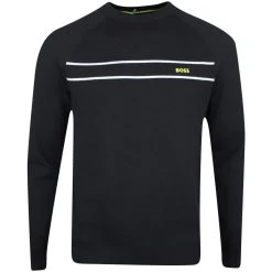 We love the look of this brand new BOSS crew neck knitwear style which is both timeless and versatile for wearing on & off the course this season. The fabrication features a hint of wool for a super soft, high quality handle with a non itch feel – while the naturally high stretch levels also ensure freedom of movement through the swing. The iconic BOSS logo is located at the left of the chest, while the two chest stripes add another dimension to the style appeal once more. One of our favourite crew neck sweaters to arrive from BOSS this year.
