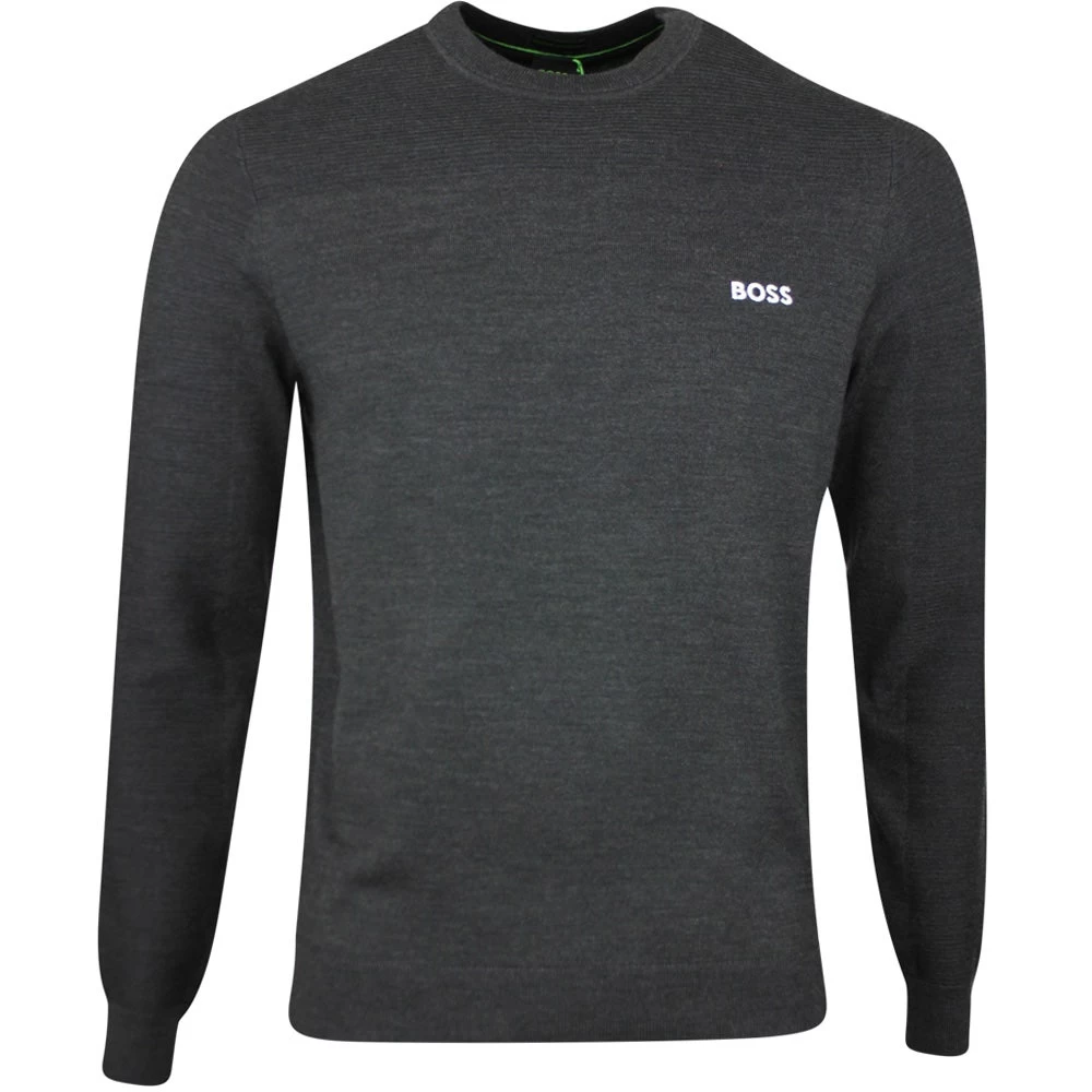 We love the look of this brand new BOSS crew neck knitwear style which is both timeless and versatile for wearing on & off the course this season. The fabrication has been crafted using a blend of special virgin wool and technical nylon for a super soft, high quality handle – while the naturally high stretch levels also ensure freedom of movement through the swing. The iconic BOSS logo is located at the left of the chest, while the additional structured details atop the sleeve, shoulders & yoke help to add texture for a sporty feel.
