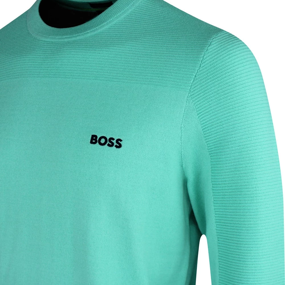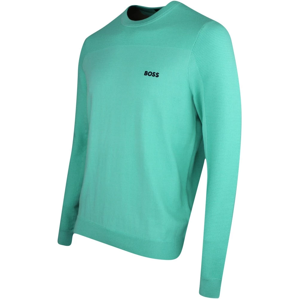 We love the look of this brand new BOSS crew neck knitwear style which is both timeless and versatile for wearing on & off the course this season. The fabrication has been crafted using a blend of special virgin wool and technical nylon for a super soft, high quality handle – while the naturally high stretch levels also ensure freedom of movement through the swing. The iconic BOSS logo is located at the left of the chest, while the additional structured details atop the sleeve, shoulders & yoke help to add texture for a sporty feel.