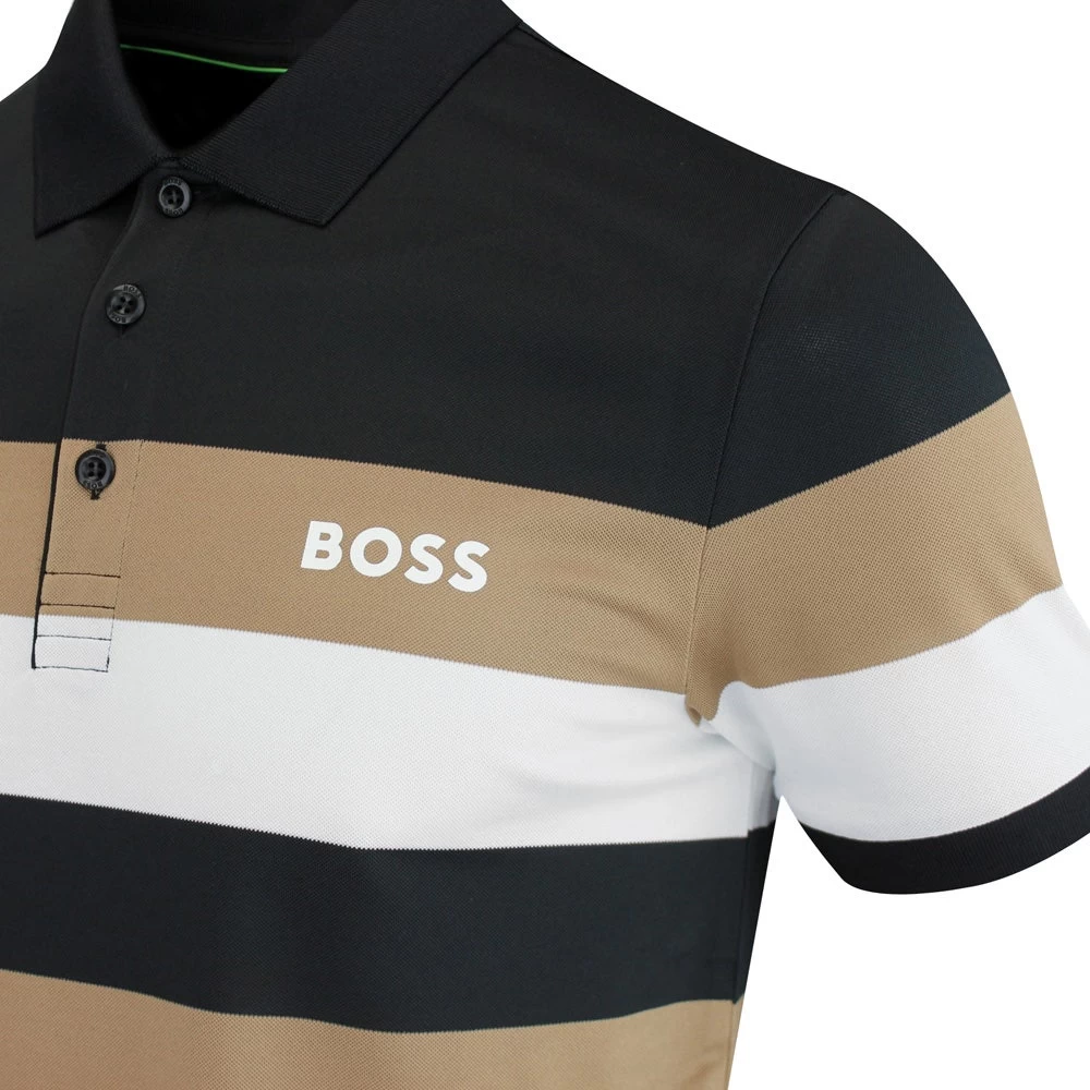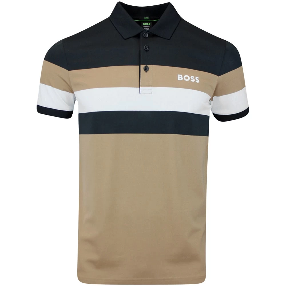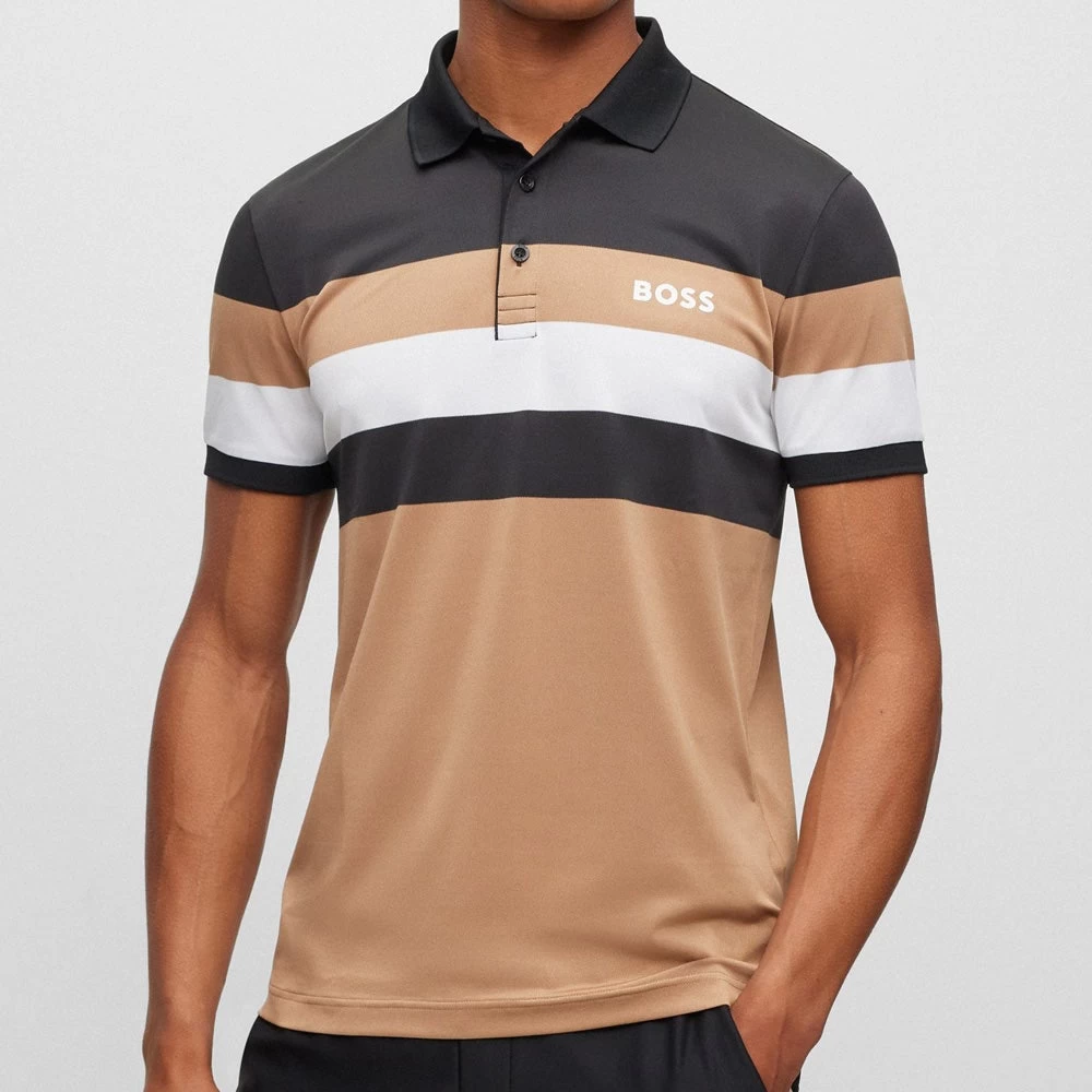 We love wearing BOSS polo shirts both on & off the course and this new Patteo MB 11 style comes from the limited edition Matteo Berrettini capsule for 2023. This particular design is sure to catch the eye thanks to the bold tri-colour chest stripe pattern which is finished in the distinctive colour palette of white, black & iconic camel – while the enlarged BOSS logo is also located at the left chest. The slim fit silhouette is tapered in all the right areas, while the soft & flexible fabric is sure to provide moisture wicking performance when it matters most. One of our favourite styles from BOSS which is set to be worn by Matteo Berrettini during the biggest tournaments on the calendar.