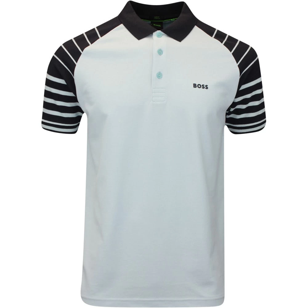 BOSS are experts when it comes to fashionable golf polo shirts and we love this new slim fit style which has arrived from the Fall 2023 collection. The technical fabric has a soft feel and is tried & tested throughout the BOSS golf clothing range – offering moisture managing capabilities to keep you feeling cool, dry and comfortable on the inside during your round. The active stretch offers freedom of movement, while the rib knit sleeve welts combine with the slim fit design to provide a familiar tapered feel throughout. The contrast raglan sleeve design marries perfectly with the stripe detail through the shoulders – all helping to make this style well worthy of adding into your on & off course looks this season.