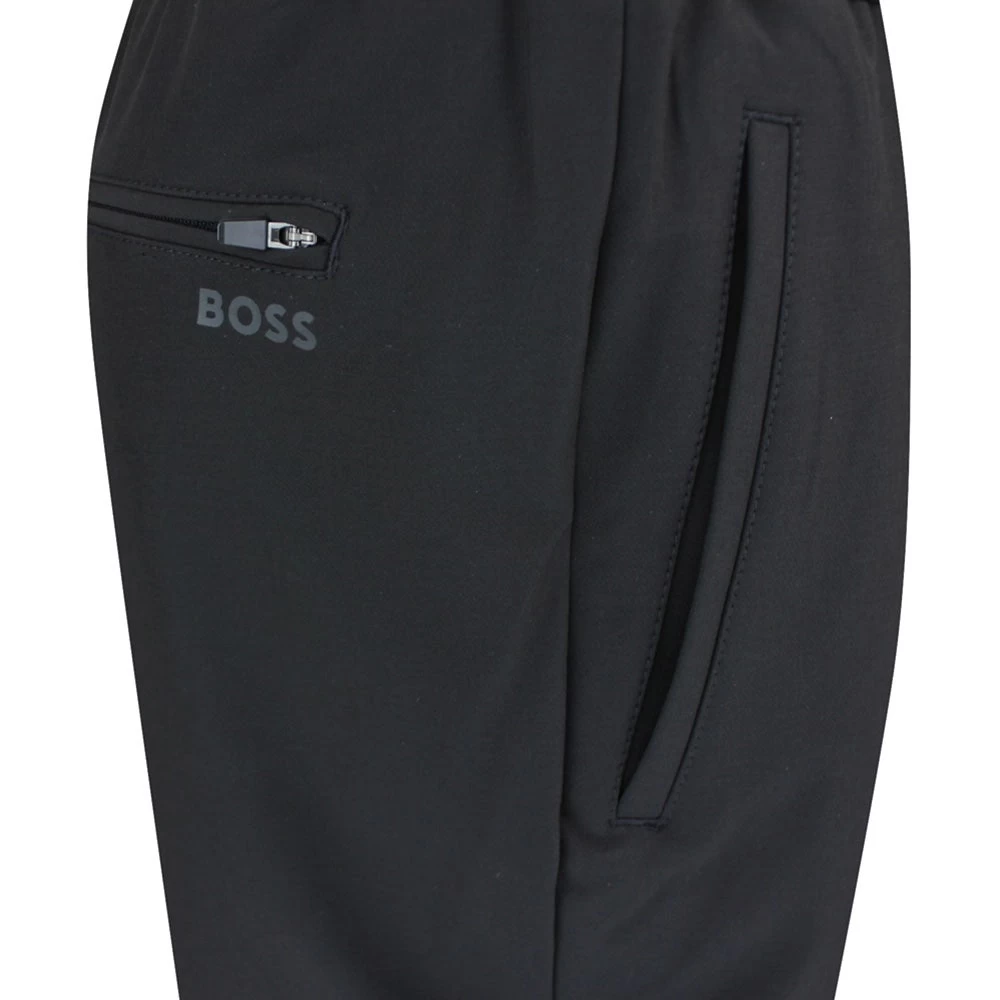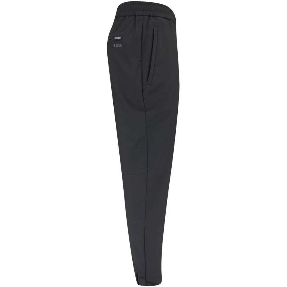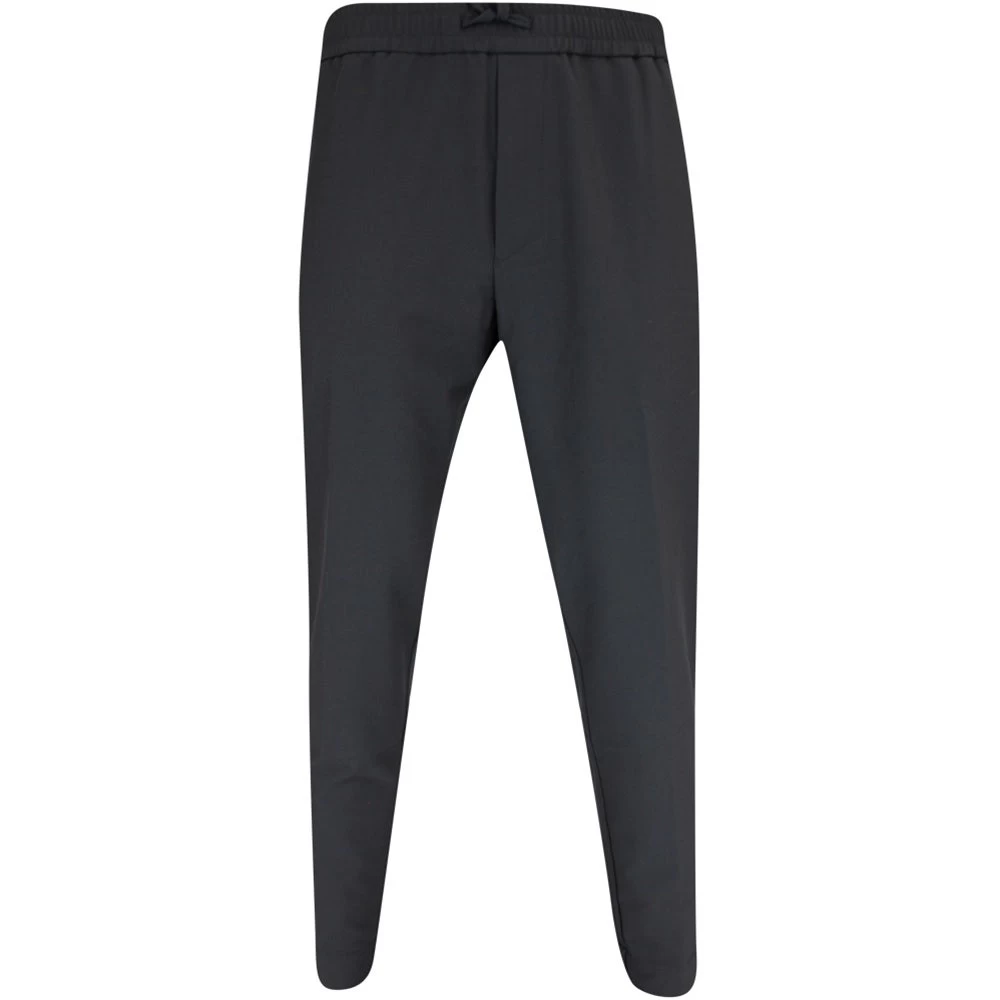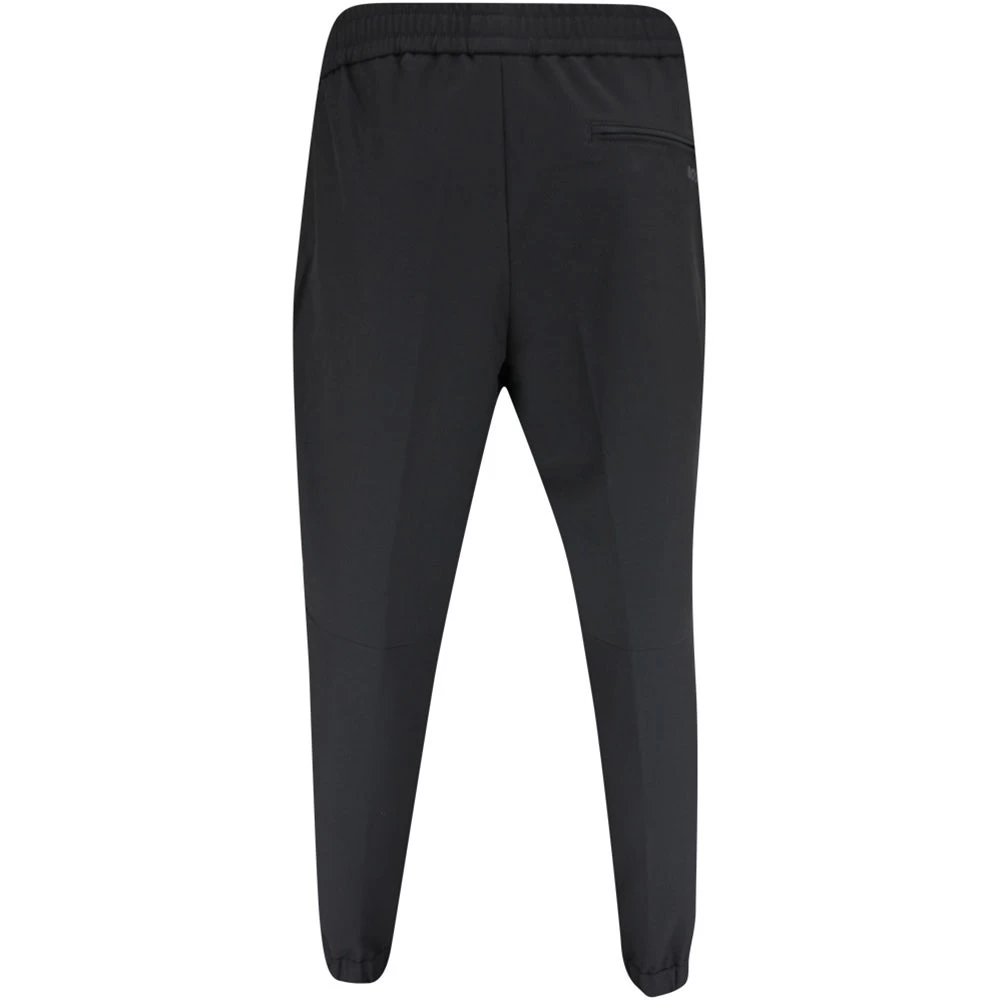 These smart BOSS golf joggers arrive from the Fall ’23 collection and offer complete comfort & performance on the golf course this season. The slim fit silhouette is complemented by the partially cuffed ankles for a modern and stylish look without feeling restrictive, while the introduction of an “athleisure crotch” construction provides even more comfort where you need it most. The “flex” jersey fabric is smooth to the touch and emphasizes the quality of the pants, while the high stretch waistband features waist ties for a secure and comfortable fit Another timeless, reliable & versatile golf pant which makes great use of a new & improved fabric.