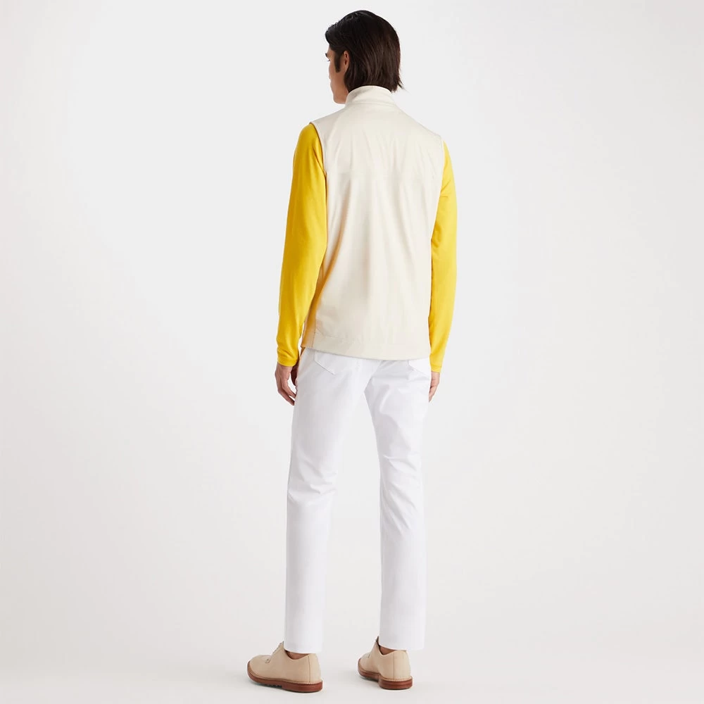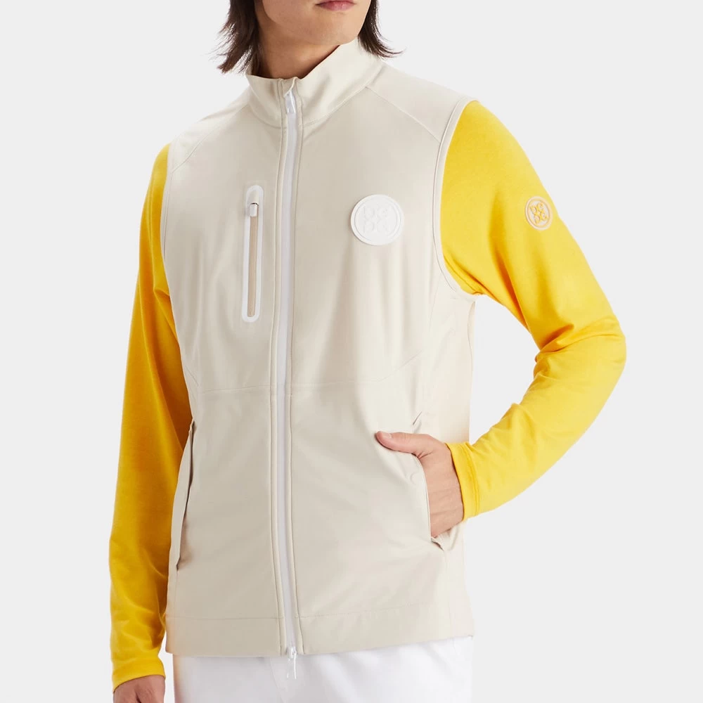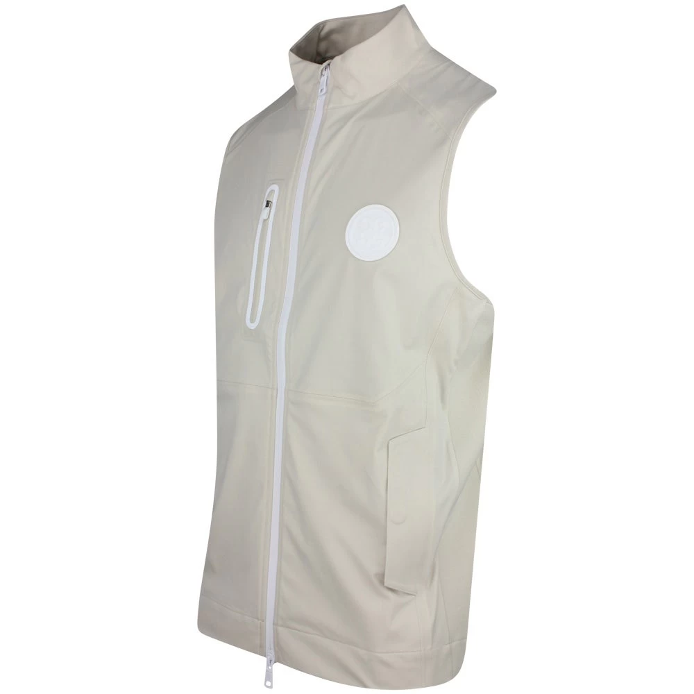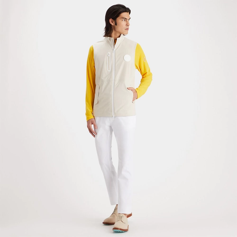 Look great while protecting yourself from the elements with this brand new G/FORE Soft Shell “Repeller” vest which arrives from the Spring 2023 collection. It looks stylish thanks to the sleeveless design and timeless colour combination, perfect for layering up your favourite G/FORE looks this season. The Dry Tex soft shell fabric will provide protection in a light rain shower, while the added four way stretch through the fabric allows for maximum freedom of movement. A two way zipper helps to avoid bulking fabric at address, while the elasticated armholes provide a perfect fit. One of our favourite gilet styles of the season.