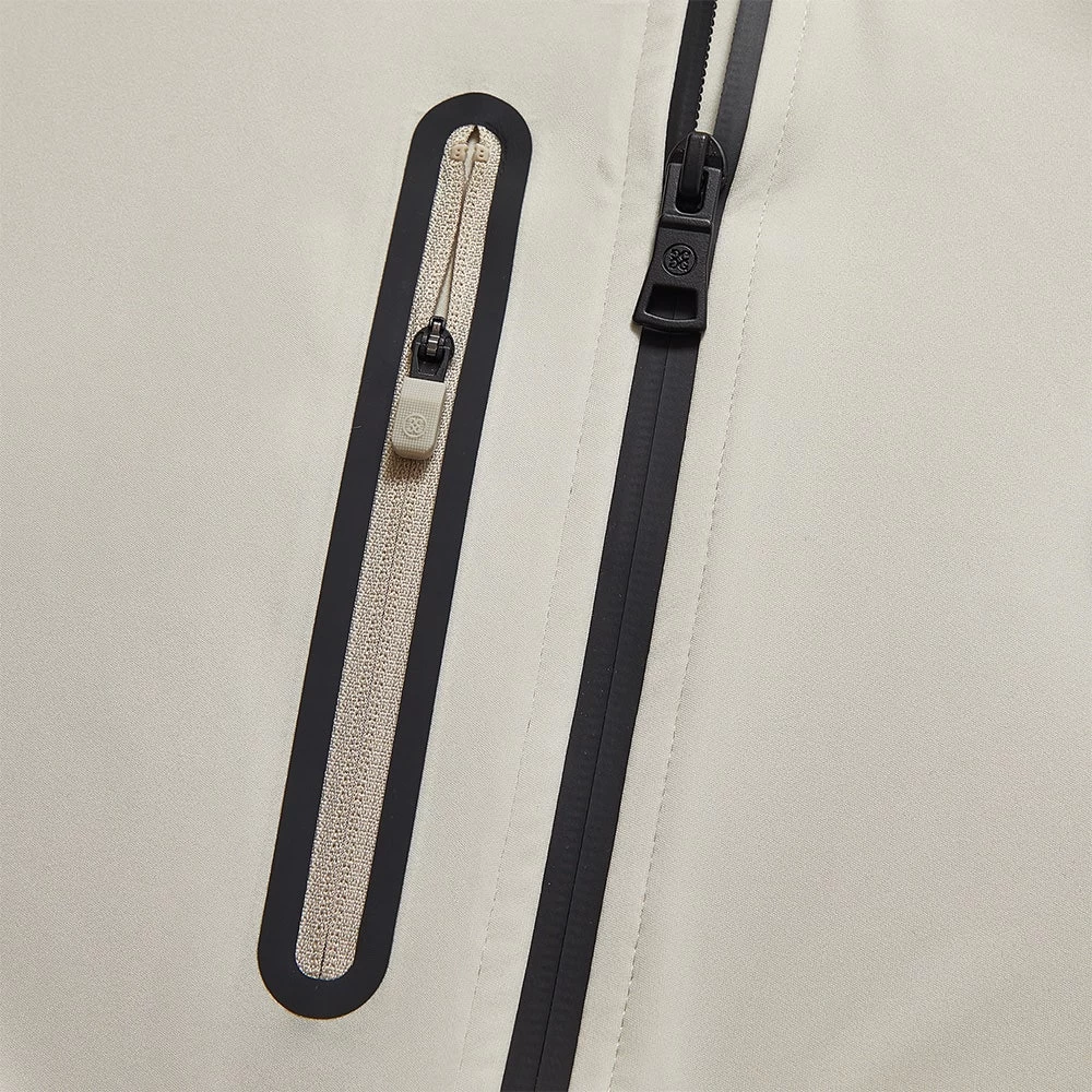 Look great while protecting yourself from the elements with this brand new G/FORE Soft Shell “Repeller” hoodie which arrives from the Spring 2023 collection. It looks stylish thanks to the full zip hooded silhouette and super fresh colour way, sure to look great both on and off the golf course this season. The Dry Tex soft shell fabric will provide protection in a light rain shower, while the added four way stretch through the fabric allows for maximum freedom of movement. A two way zipper helps to avoid bulking fabric at address, while the high stretch cuffs & hemline allow for an ideal fit. One of our favourite outerwear styles of the season.