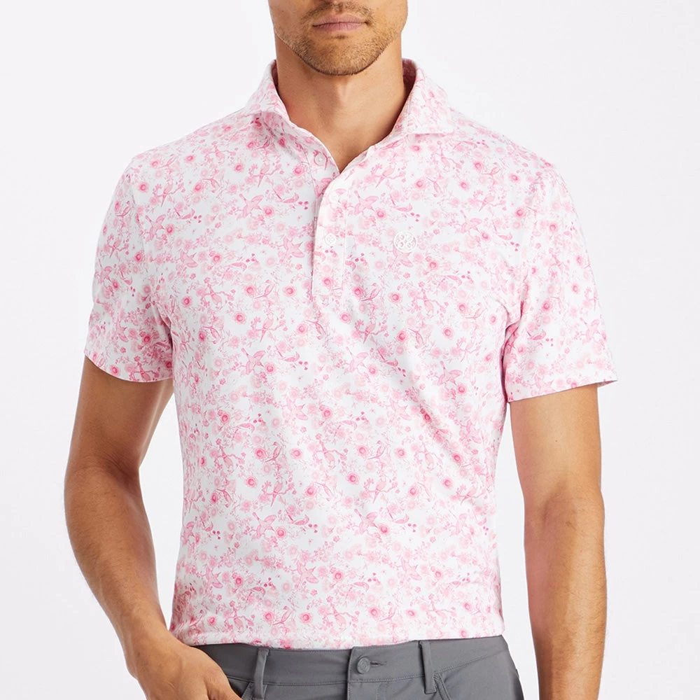 G/FORE golf polo shirts are up there with some of the best in the game and we love this new style which has arrived from the Fall ’23 collection. It features an all over floral print pattern which looks especially fresh in this seasonal colour combination, complete with the iconic G/FORE logo at the left chest. The soft jersey fabric features a high degree of stretch for maximum comfort in performance, while the moisture wicking nature of the fibres will leave you feeling cool and dry on the inside too. Another fashionable and eye catching style from one of the best golf brands around.