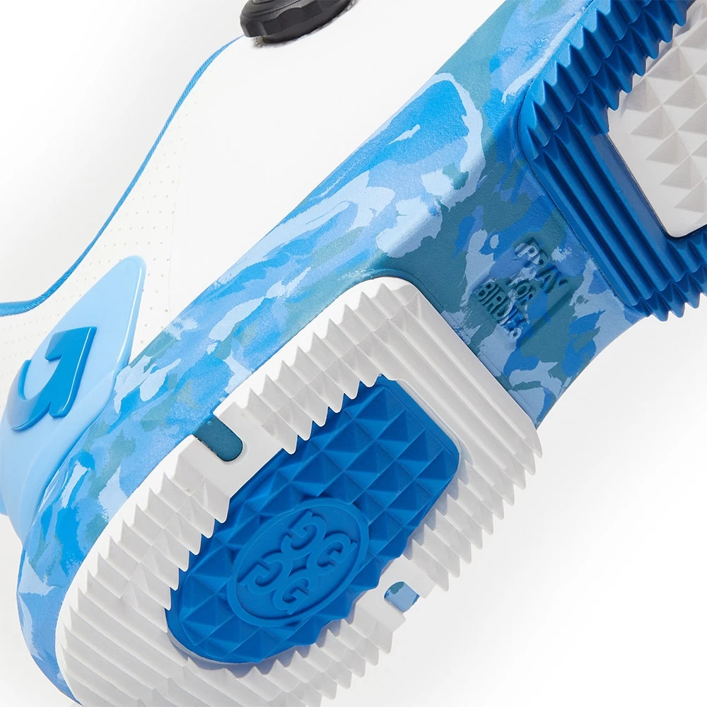 This brand new spikeless shoe from G/FORE marries a progressive look with a premium waterproof upper and patented twist dial lacing for even more convenience and a customised fit. This year’s design updates include the perforated leather material which is used at the rear & tongue, while the bright blue camouflage print through the midsole is an ultra fresh and distinctive G4 look. Two dials at the outstep allow you to conveniently lock in your custom fit, while the contrast heel counter provides additional lateral support through the golf swing. Comfort levels are assured through the auxetic lattice midsole with “FOREFOAM” cushioning, marrying perfectly with the triple density footbed which is “the ultimate massage for your soles”. Finally, the flexible rubber outsole features a hybrid traction pattern for top level performance on the golf course while also proving soft enough to wear on harder surfaces away from the course. Another clean and stylish spikeless silhouette from one of the best footwear brands in the game.