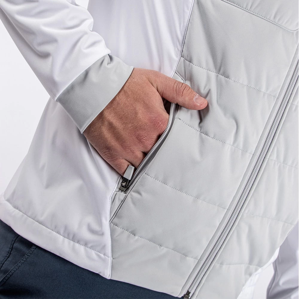 Interface-1 golf outerwear styles make use of a proprietary fabrication which has been especially developed for complete wind proof protection and water resistance. It provides high levels of comfort thanks to the smooth interior feel and soft, quiet exterior handle – while this particular Galvin Green soft shell jacket style also features lightweight Thermore quilting at the front & rear for even more warmth without the bulk. Another top choice of outerwear from Galvin Green which looks better than ever thanks to the introduction of the contrast front & rear panels.