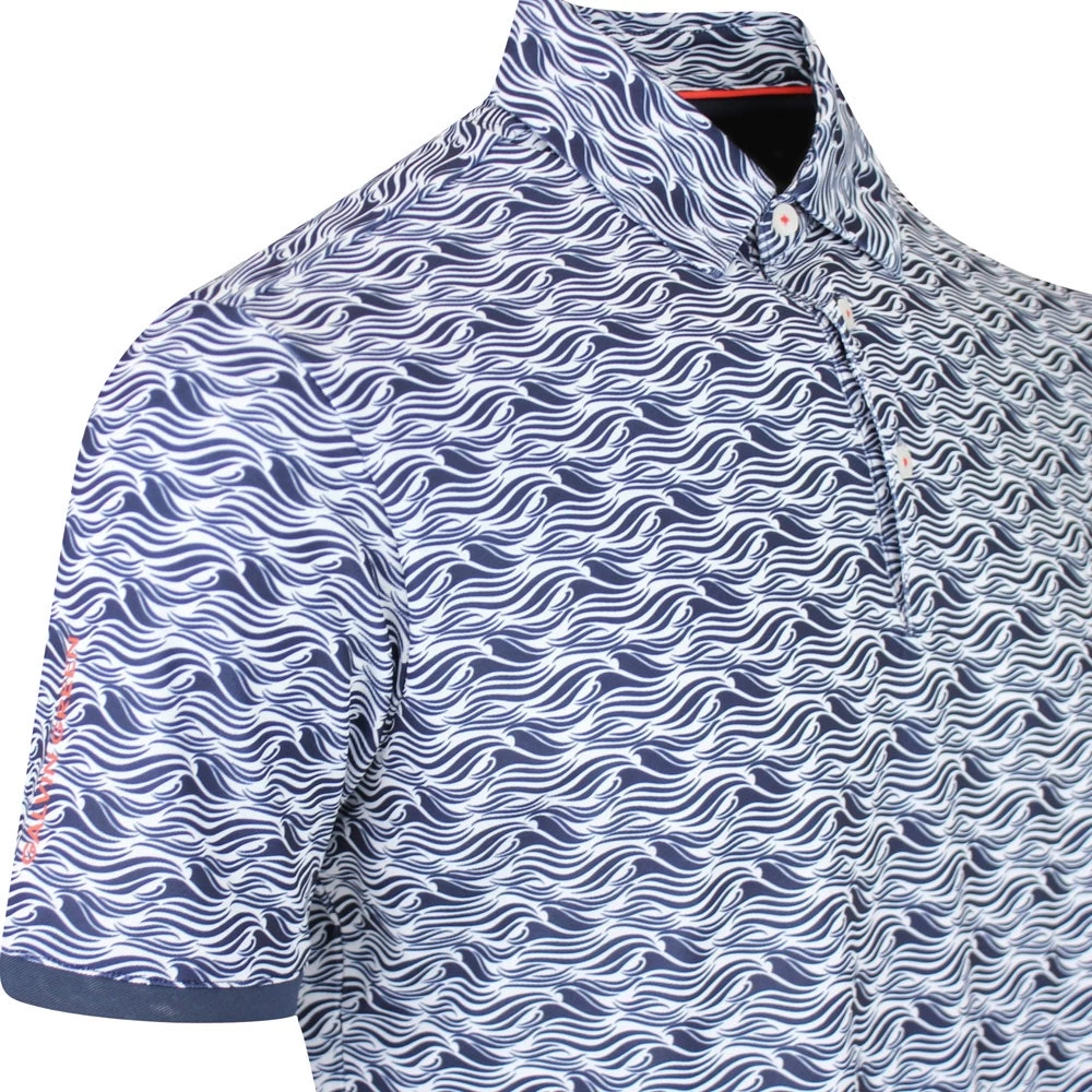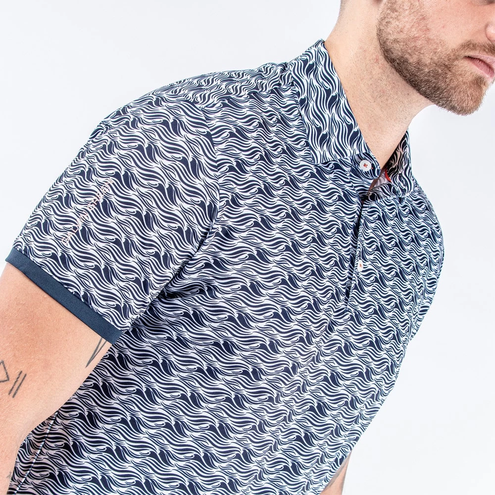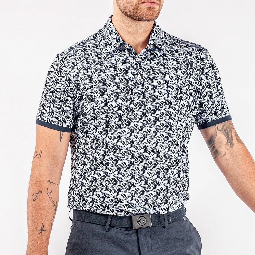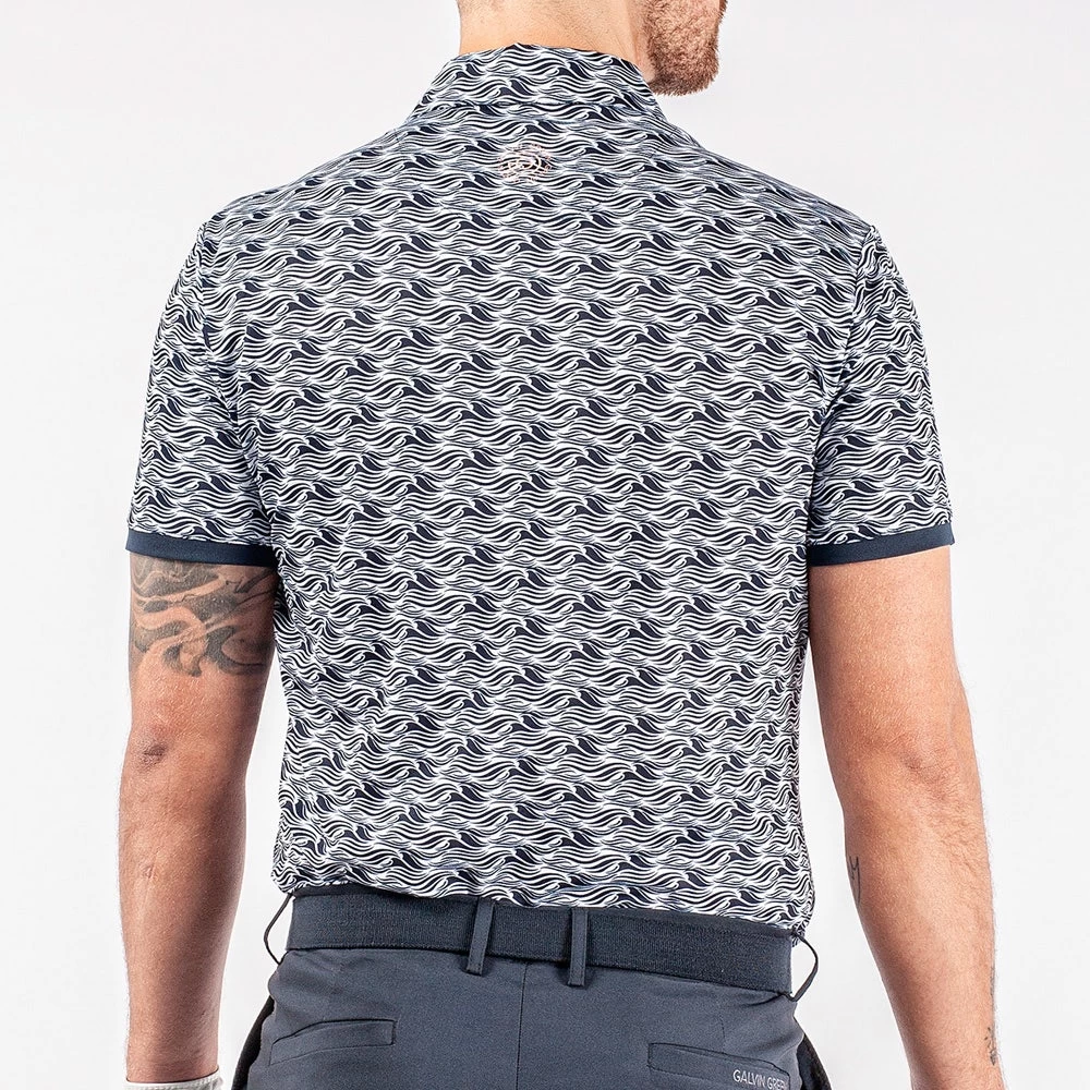 This brand new Galvin Green golf polo shirt makes excellent use of the acclaimed Ventil8+ technology to offer lightweight comfort with exceptional moisture managing capabilities. This is provided through the active dispersion of moisture across a widespread area, allowing for rapid cooling and quick drying performance. The all over yarn dye graphic really does catch the eye in this particular colour combination – helping to make this a worthy addition to your wardrobe.