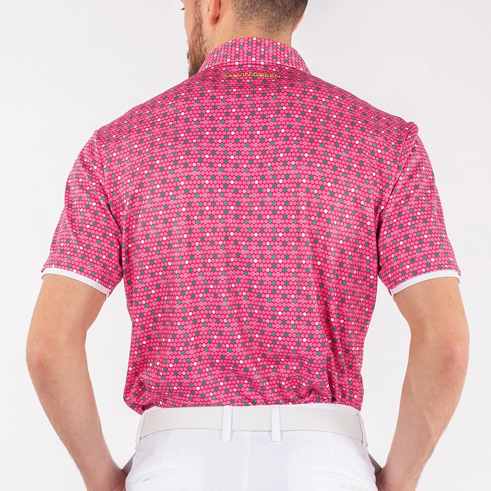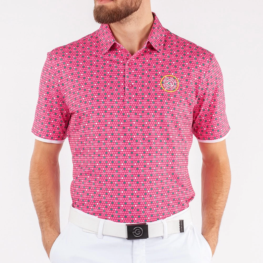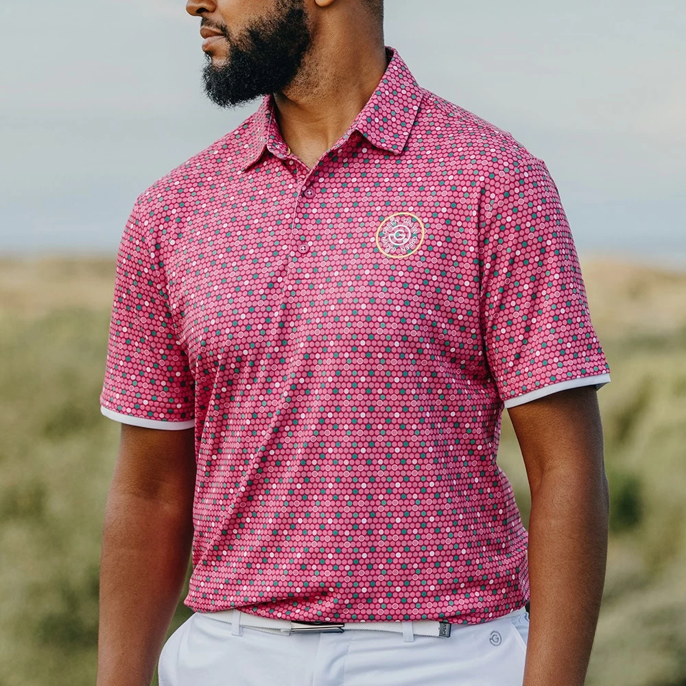 Ahead of this year’s opening major championship, Galvin Green have introduced this limited edition Ventil8+ polo shirt which make excellent use of the colour palette synonymous with one of the most famous sporting events in the world. The highly acclaimed Ventil8+ technology ensures lightweight comfort with exceptional moisture managing capabilities, perfect for wearing when the temperatures are heightened this season. The all over geometric print really does catch the eye in this particular colour combination – complete with miniature “G” logos scattered throughout the micro-dot effect. Definitely one of our favourite polo shirt styles to come from Galvin Green, especially in this celebratory colour combination.