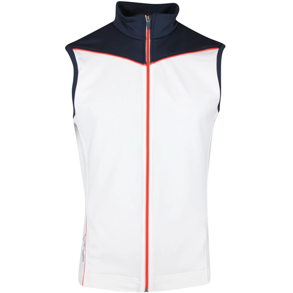 Galvin Green Insula mid layers offer lasting warmth, comfort & thermal regulation thanks to the built-in air chambers which retain body heat without adding any extra bulk to the garment. The Insula fabric is also soft to the touch with a high degree of stretch to further enhance your comfort levels, coupling up with the sleeveless vest silhouette to ensure maximum freedom of movement through the golf swing. The elasticated armholes on this sleeveless style help to provide a great fit, while the understated styling allows for effortless layering into your looks this season. Finally, the high performance fabric is also BLUESIGN Approved having been made from recycled materials – reinforcing the brand’s commitment to sustainability.