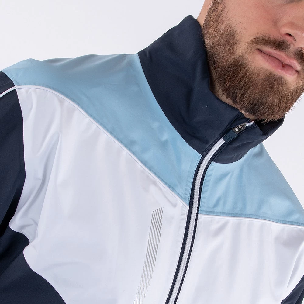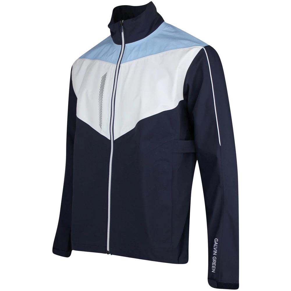 The all new Galvin Green Armstrong Paclite waterproof golf jacket features added stretch through the GORE-TEX fabric, helping to maximise your movement and minimise restriction in the golf swing. The single shell fabrication has been especially designed for golfers with the utmost internal comfort and external protection, while the jacket is easily packed away for when the rain showers stop. The full zip silhouette provides a sleek look, marrying well with the colour blocked Chevron styling which catches the eye for all the right reasons. Definitely one of our favourite waterproof styles to come from Galvin Green, especially in this colour combination.