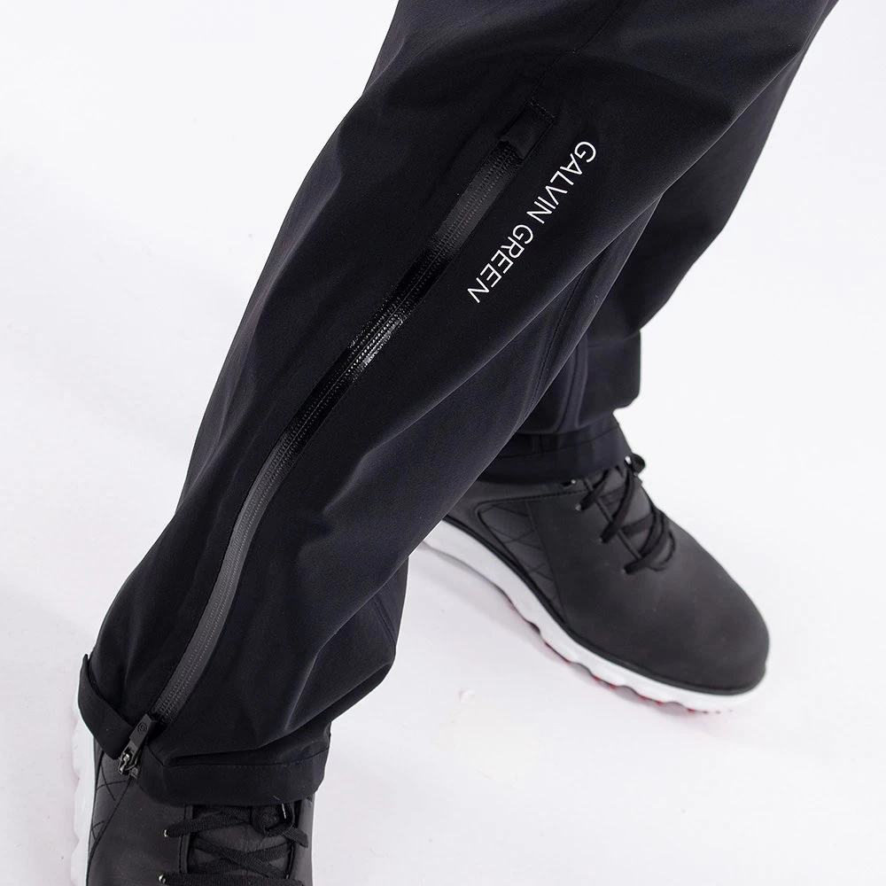 The all new Arthur waterproof golf pant makes use of the Gore Tex Paclite fabrication with added ergonomic stretch, all while retaining the super lightweight and packable properties. The fully waterproof yet highly breathable nature of the fabric makes these rain pants incredibly comfortable to wear on the golf course in all conditions, while the inclusion of several adjustment areas helps you find the perfect fit. A modern update for the acclaimed Galvin Green paclite golf pants which offer superb value for money this season.