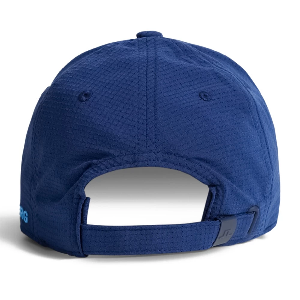 Complete your new season J.Lindeberg look with this highly technical golf cap which is both stylish and functional for wearing all year round. The lightweight fabric offers all round breathability thanks to the High Vent mesh fabric, while a moisture wicking sweatband will keep you feeling cool and comfortable in the warmest temperatures. An adjustment strap ensures one size fits all, finished with a rubberised metallic clasp which is a classy touch. Iconic JL branding is located on the front and the left side and looks especially great in this seasonal colour combination.
