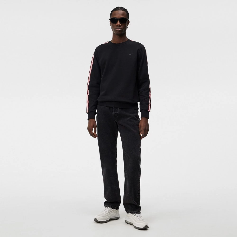J.Lindeberg is one of the most fashionable golf brands around and the new Alpha athleisure line up crosses over between their ski, fashion & golf collections. This crew neck mid layer style has a classic cotton handle and comes finished with a brushed interior for added warmth, while the natural stretch levels provide comfort and freedom of movement. The signature JL bridge logo takes pride of place at the left side of the chest, while the additional rubber printed stripe detailing on the sleeves further brings this style to life once more. Lightly ribbed cuffs and hemline provide a great fit and helps to make this an excellent pick up this season.