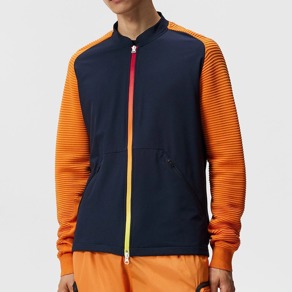 We love that J.Lindeberg push boundaries with unique and interesting silhouettes, so this new full zip mid layer jacket style catches the eye for many reasons. Two different fabric types are utilised to great effect & add both visual style appeal and even more performance throughout the style. The front panel is both water repellent and wind proof for protection in a light rain shower, while the 3D rib knit sleeves are highly flexible for complete freedom of movement. The rear panel is also made with a stretchy knit mid layer material, while the cut away collar also allows for effortless layering. One of the top mid layer hybrid jackets in the game this season.
