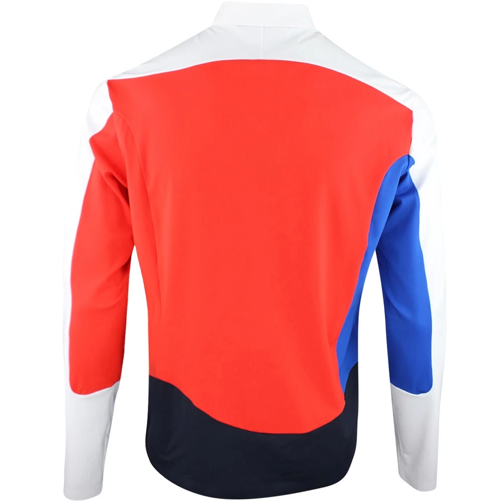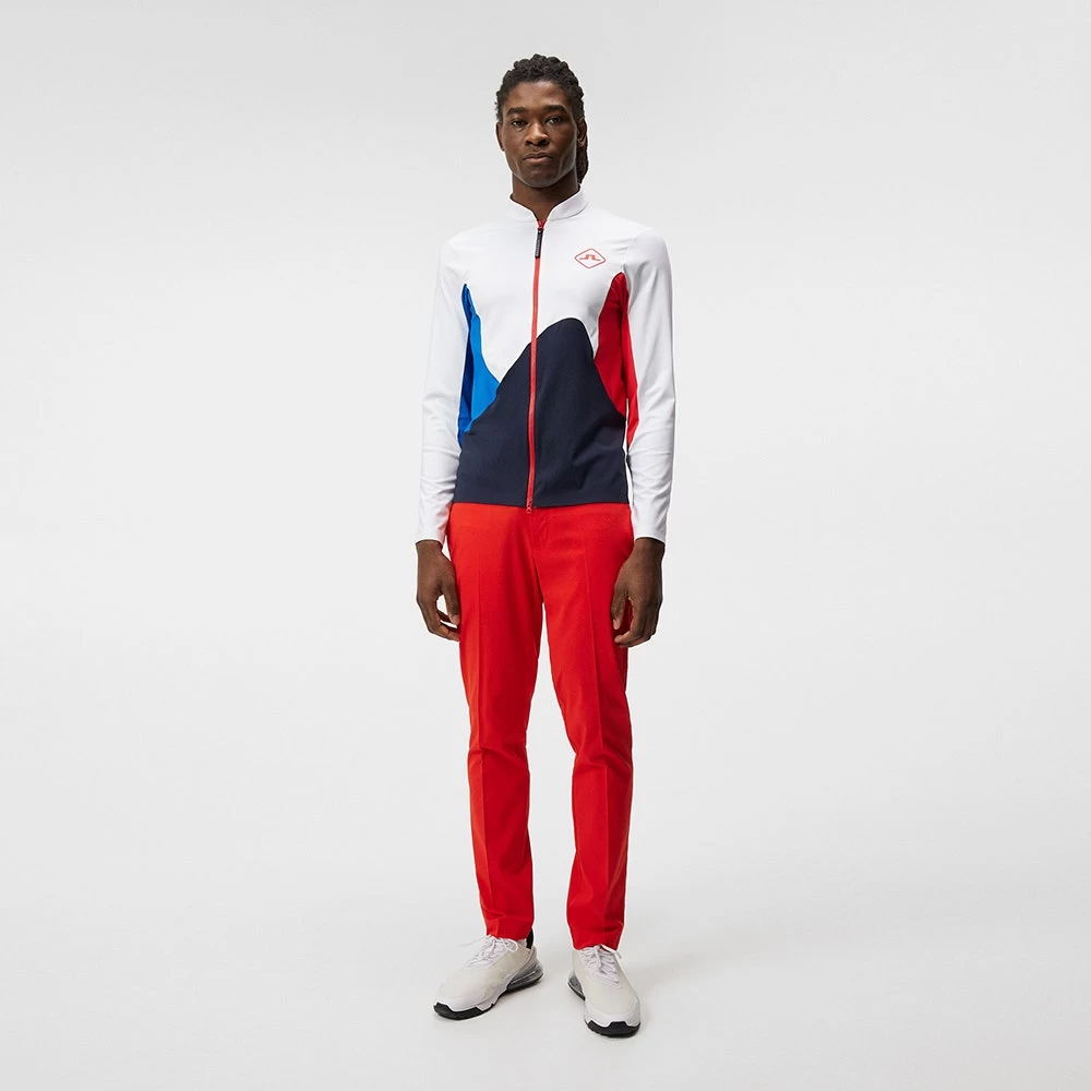 This high performance mid layer style is brand new and arrives from the J.Lindeberg collection for SS23 – ticking the boxes for both style and function this season. That’s because it makes use of a structured Sport Jersey fabric with pockets of air for improved heat retention, all without adding bulk to the garment itself. The colour blocked styling looks ultra fresh with the Diamond Bridge logo at the left chest, while the swirl pattern looks ultra fresh in this colour combination. A cutaway collar shape allows for effortless layering and minimal distraction, while the high stretch levels ensure maximum freedom of movement.