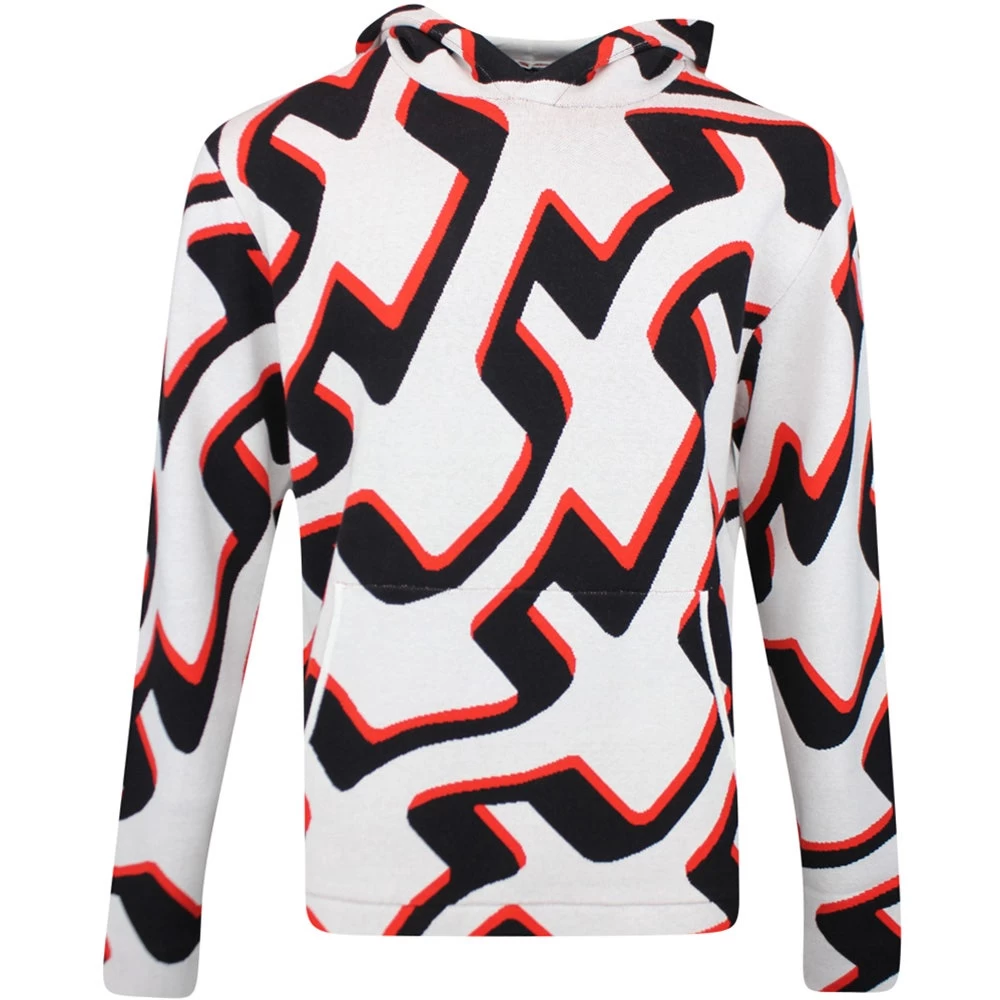J.Lindeberg is a brand which excels when it comes to knitwear and this mid layer hoodie has the look of a classic knit jumper – yet made with a technical performance fabric with a warm internal lining. That means that you can enjoy all the benefits of a performance JL mid layer such as moisture wicking breathability, warmth and flexibility – all with the look of a traditional sweater made from natural materials. The hooded silhouette will transfer into your off course looks with ease, completed by the all over seasonal print which is especially effective in this colour combination. One of our favourite styles from the latest AW23 range.