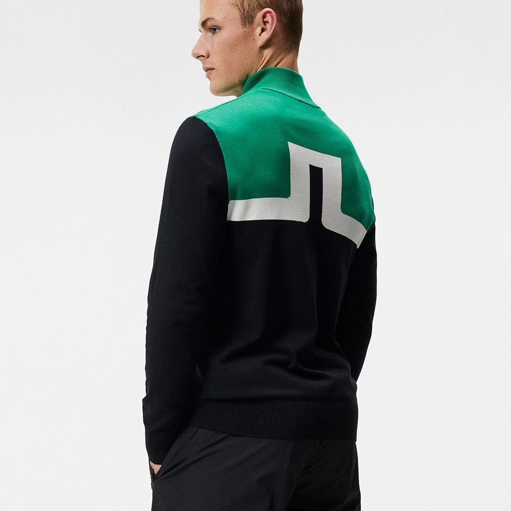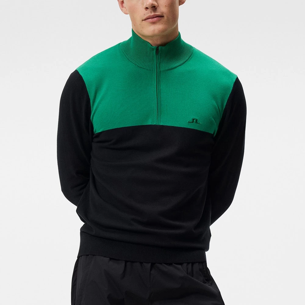 J.Lindeberg is a brand which excels when it comes to knitwear and this quarter zip sweater has the look of a classic knit jumper – yet has been made with a technical performance fabric. That means that you can enjoy all the benefits of a performance JL mid layer such as moisture wicking breathability, warmth and flexibility – all with the look of a traditional sweater made from natural materials. The colour blocked styling is brought to life by the enlarged JL Bridge insert at the yoke – a hallmark which is most famously featured on the J.Lindeberg “KV” polo shirt – while the Bridge logo is also located at the left chest. Set to become a wardrobe staple for the most fashionable golfers around.