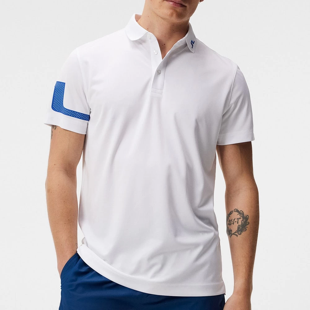 The new J.Lindeberg “High Summer” collection is here and this newly updated Heath Regular Fit polo shirt is an easy way to get involved with JL this season. It features timeless styling with the iconic Bridge logo woven into the collar, while an enlarged Tour sized JL Bridge is also located on the right sleeve – now with laser cut perforations for even more visual appeal. The premium TX Jersey fabric has a soft handle and features moisture wicking performance for comfort on the inside, while the high degree of stretch leaves you feeling free to move through the golf swing. A wardrobe staple from J.Lindeberg with a fresh look for Summer ’23.