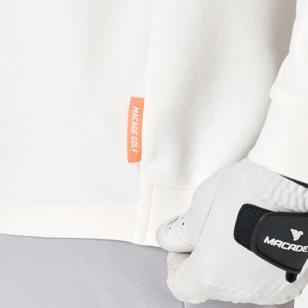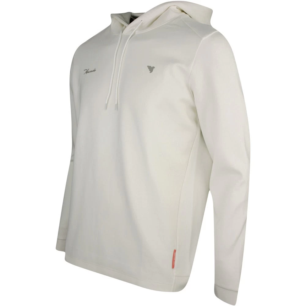 Macade Golf is one of the newest brands in the game which is worn on tour by the likes of Garrick Higgo, Lucas Bjerregaard & Alex Noren. This brand new mid layer hoodie is an easy wearing style which is ideal for layering up in cooler conditions this season. It comes complete with Macade branding on both sides of the chest, while you can also find a branded tab at the left hip for added visual interest. The fabric is soft to the touch and resembles a heavyweight tech-pique material, thus embracing a more lifestyle look and feel while retaining some key performance benefits. One of the best styles from the latest SS23 range by Macade.