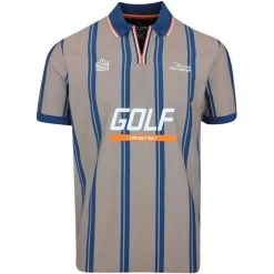 Admiral Sportswear is a brand with over a 100 years of esteemed history & we’re super excited to see them collaborating with one of our favourite golf apparel brands, MACADE. Admiral’s roots are in supplying sportswear to some of the most famous teams in the world & their golf-specific collaboration with Macade draws on historic traits of classic Admiral football kits, reinventing them for the demands of the most modern & fashionable golfers with a sense of nostalgic, mid-century styling inspiration. In particular, this striped shirt is made using a rich fabric with a slightly heavier handle for a more retro, lifestyle aesthetic – complete with an open placket & collaborative branding throughout. The all over striped design throws is back to football kits of the 1970’s, while the unique colour palette helps to make this style stand out from the crowd. One of the best styles from the Macade x Admiral collaboration.