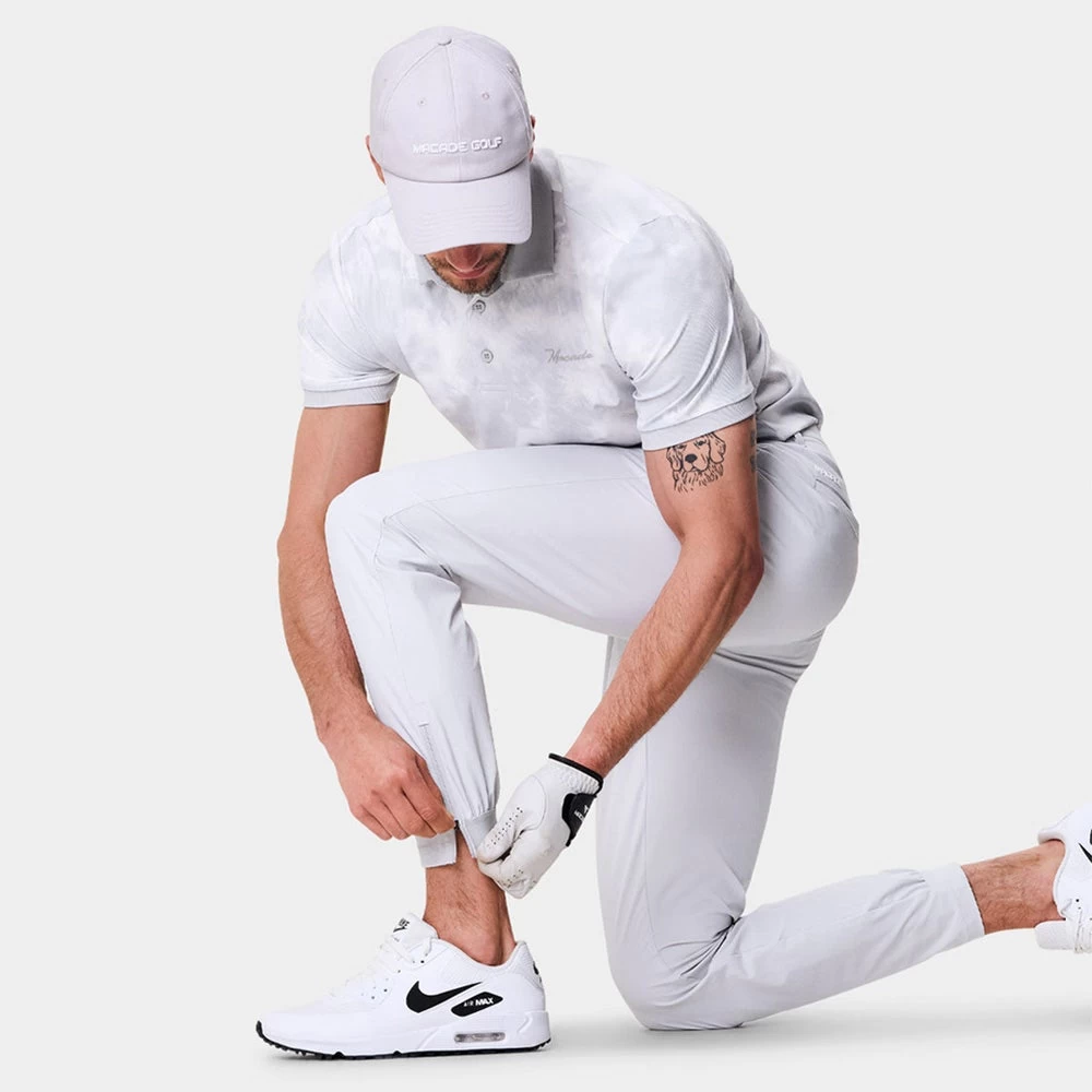 Macade Golf is one of the newest brands in the game which is worn on tour by the likes of Garrick Higgo, Lucas Bjerregaard & Alex Noren. This particular style embraces one of the hottest trends in the world of golf fashion and boasts an ultra slim fit silhouette with a stretchy, cuffed ankle – complete with a small side zip for ease of on & off. The fabric has four way stretch with a high quality twill finish, while signature Macade branding is located above the rear pocket. An internal gripper waistband will prevent your top from riding upwards and moisture wicking technology ensures you stay dry on the inside even during the warmest rounds. A traditional button clsoure, zip fly & belt loops help to retain that “smart jogger” look, while the four pocket construction provides ample storage for your essentials on the course. The perfect way to complete your Macade looks this season.