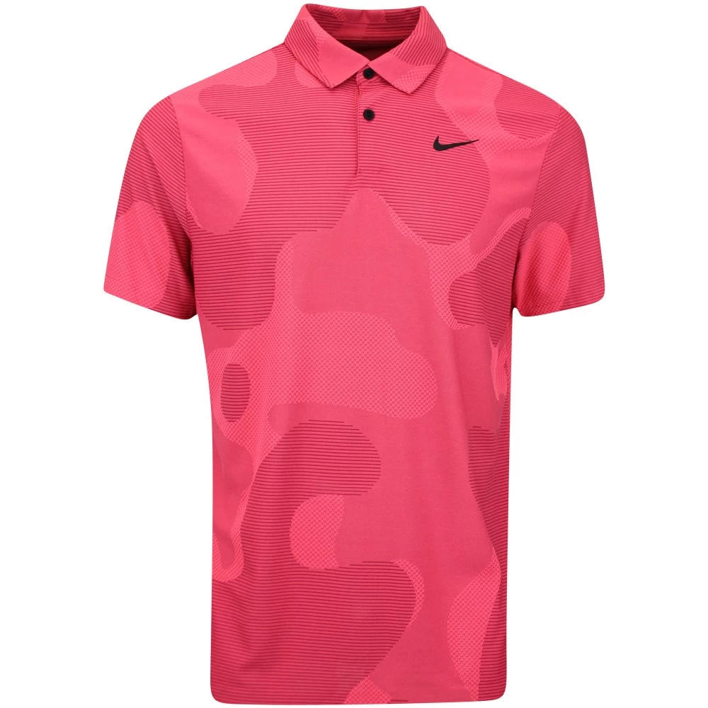 This year, Nike Golf are giving you the chance to wear the exact same styles as their top TOUR ambassadors – now including the same high contrast branding that you’ll see on your TV screens. This means that you can now find the signature Swoosh logo at both the left chest and right shoulder blade, the latter being a new logo placement which has rarely been seen on screen before. This particular polo shirt boasts an advanced Dri-Fit ADV material which is used throughout the Nike sportswear ranges, specifically for those in high performance settings. The design features a variety of knitted textures which are positioned in strategically high heat areas for enhanced breathability and cooling throughout – with the “shadow camo” pattern having been determined by athlete generated heat maps.