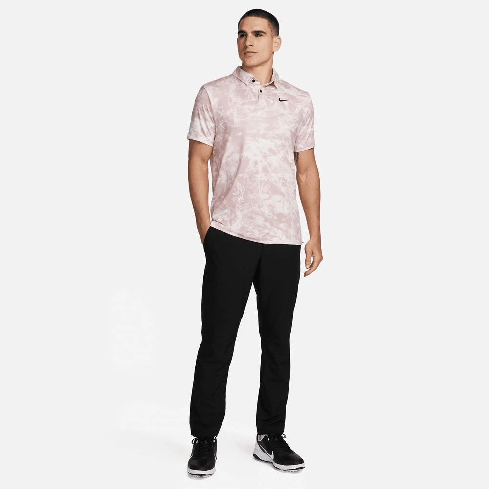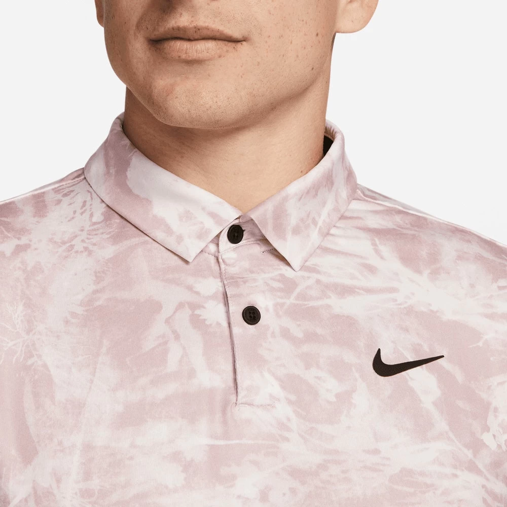 This year, Nike Golf are giving you the chance to wear the exact same styles as their top TOUR ambassadors – now including the same high contrast branding that you’ll see on your TV screens. This means that you can now find the signature Swoosh logo at both the left chest and right shoulder blade, the latter being a new logo placement which has rarely been seen on screen before. This particular polo shirt boasts moisture wicking Dri-Fit technology to keep you cool, dry and comfortable on the inside – while the regular fit silhouette is comfortable in all the right areas. The high level of stretch allows for maximum freedom of movement, while the hem vents allow this style to be worn untucked without compromising on the overall styling. A must have for any Nike Golf fan this season – especially in this all over “Solar Floral” print.