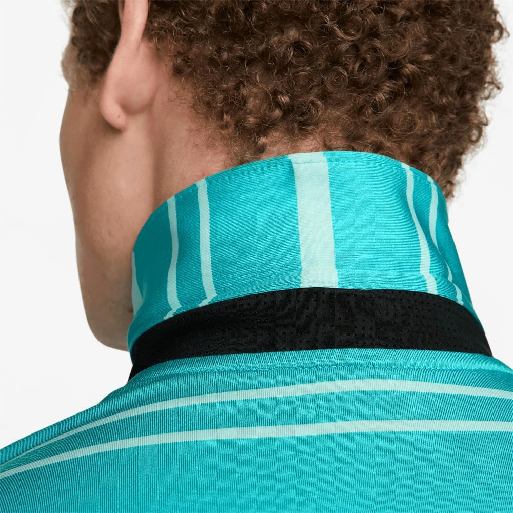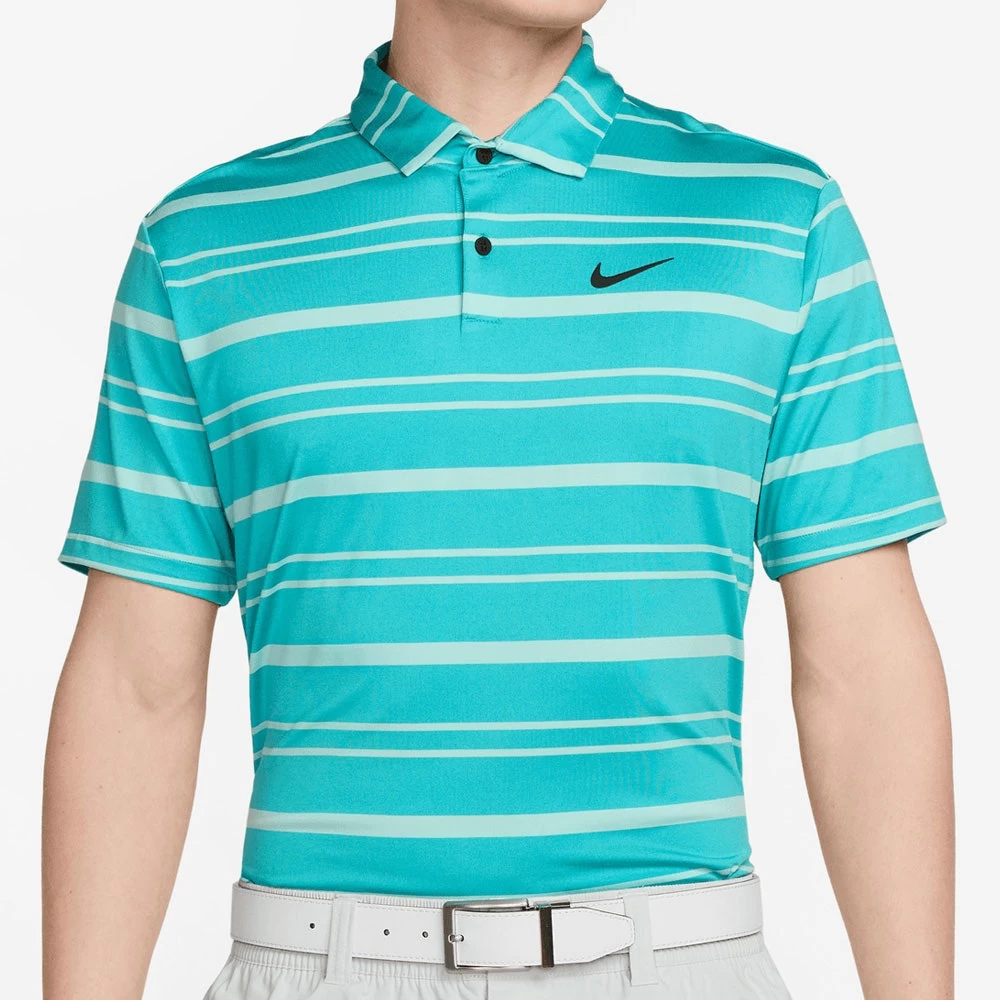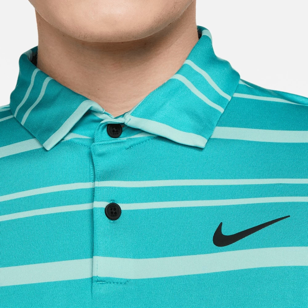This year, Nike Golf are giving you the chance to wear the exact same styles as their top TOUR ambassadors – now including the same high contrast branding that you’ll see on your TV screens. This means that you can now find the signature Swoosh logo at both the left chest and right shoulder blade, the latter being a new logo placement which has rarely been seen on screen before. This particular polo shirt boasts moisture wicking Dri-Fit technology to keep you cool, dry and comfortable on the inside – while the regular fit silhouette is comfortable in all the right areas. The high level of stretch allows for maximum freedom of movement, while the hem vents allow this style to be worn untucked without compromising on the overall styling. A must have for any Nike Golf fan this season – especially in this colour combination.