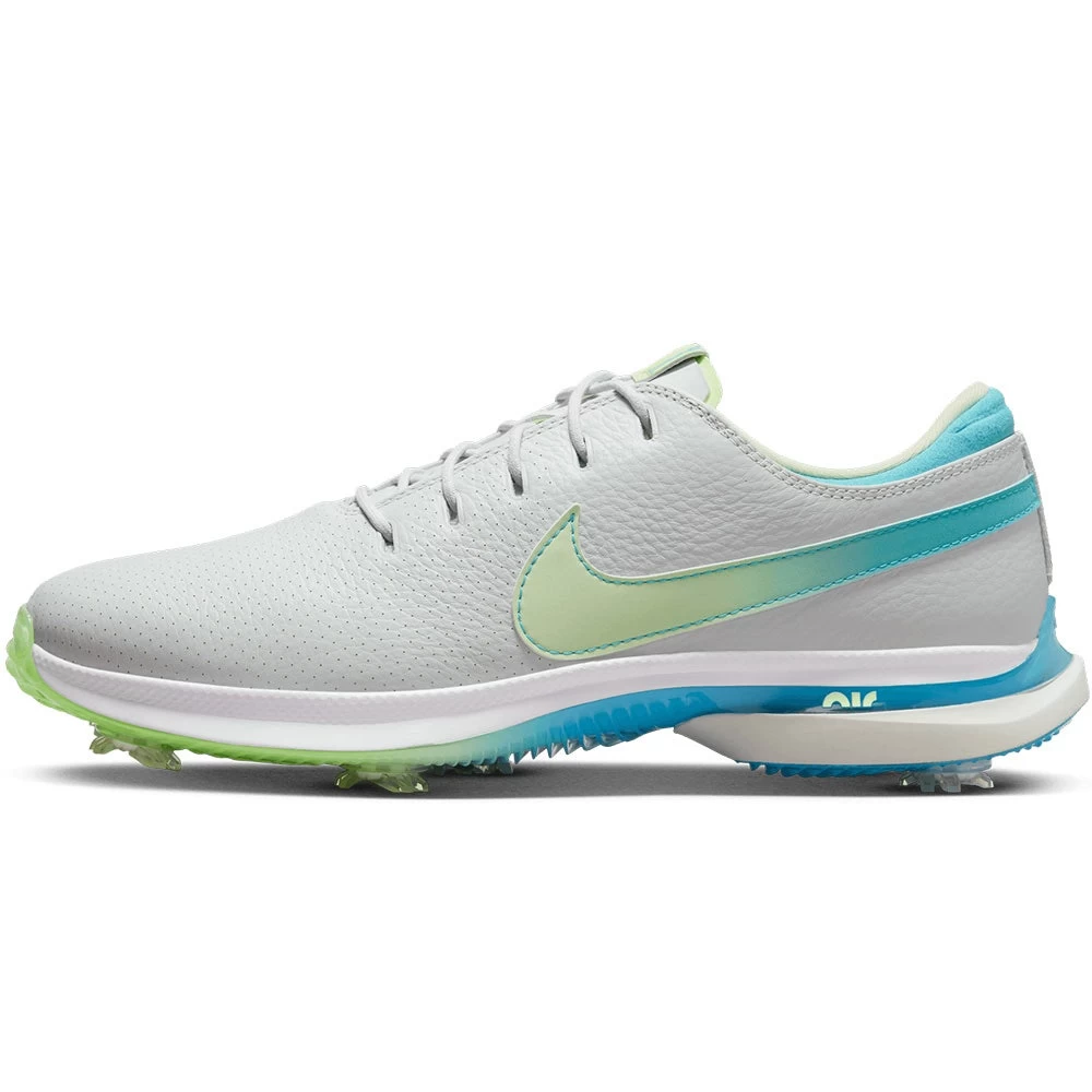 The Nike Air Zoom Victory Tour 3 golf shoe has been updated for 2023 and provides a new Tour Inspired aesthetic thanks to the solid wrap-around Nike Swoosh logos. The full grain leather upper has a soft and supple feel with a sophisticated, premium look thanks to the micro perforations to the front – while the two tone Swoosh logo is an ultra fresh look in this colour combination. A new Champs Spike System in the key 3 forefoot spike locations and Cyclone Pro Tour spikes in lateral and heel offer exceptional traction in all conditions and give your feet great grip on the ground – combining perfectly with an integrated traction pattern for outstanding gripping power. Signature REACT cushioning marries with the Air Zoom sole unit for exceptionally responsive cushioning, while a newly introduced internal strap stretches over your foot to lock you into position. Already the footwear of choice for many Nike athletes – including Rory McIlroy.