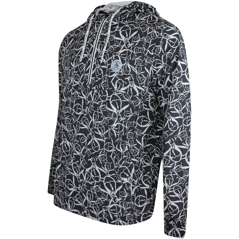 Original Penguin is one of the newest brands to arrive online at Golfposer and their crossover styles are perfect for wearing on & off the golf course this season. The OPG Trademark Printed wind jacket boasts a quarter zip hooded silhouette with a stretchy fabrication, finished with an invisible DWR coating for longevity. The dobby backed lining of the material will leave you feeling comfortable from the inside out, while the two zipped pockets enhance the convenience factor. A unique outer layer style featuring a repeating, overlapping pattern of Pete logos which is an especially fashionable look in this colour option.