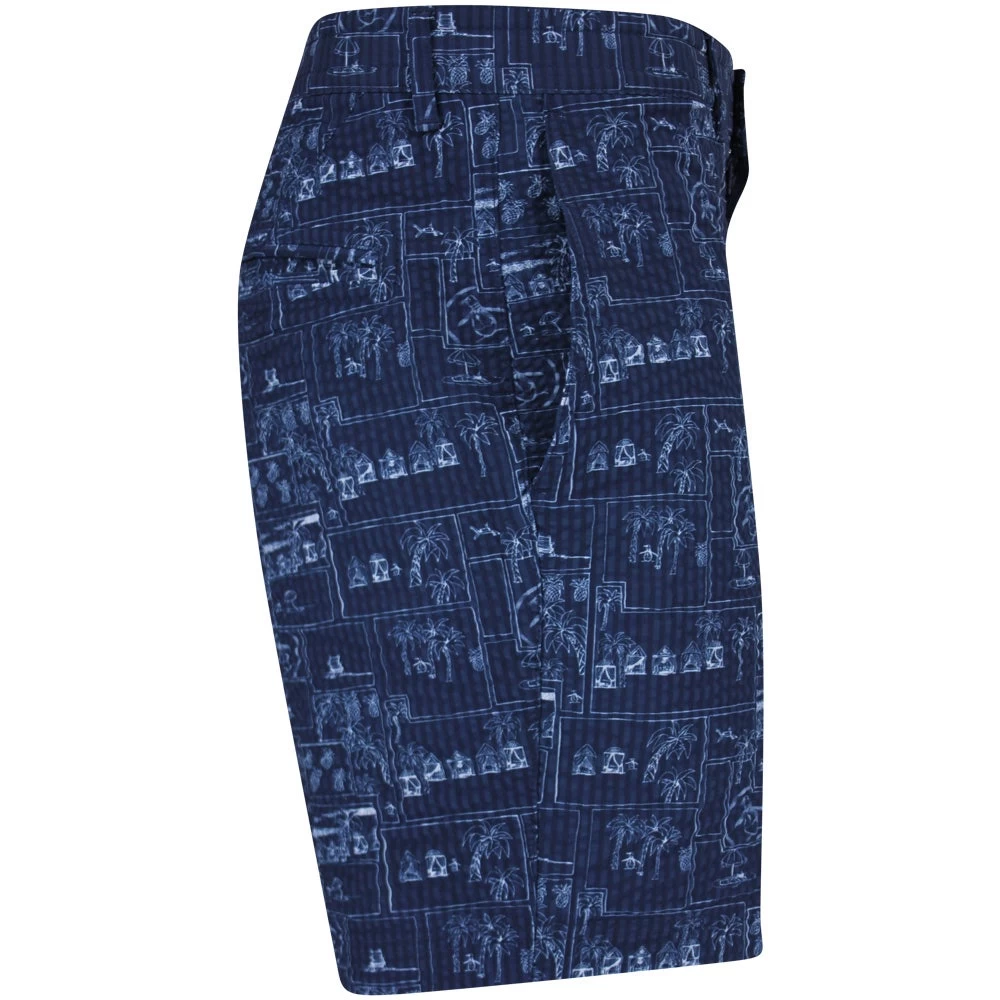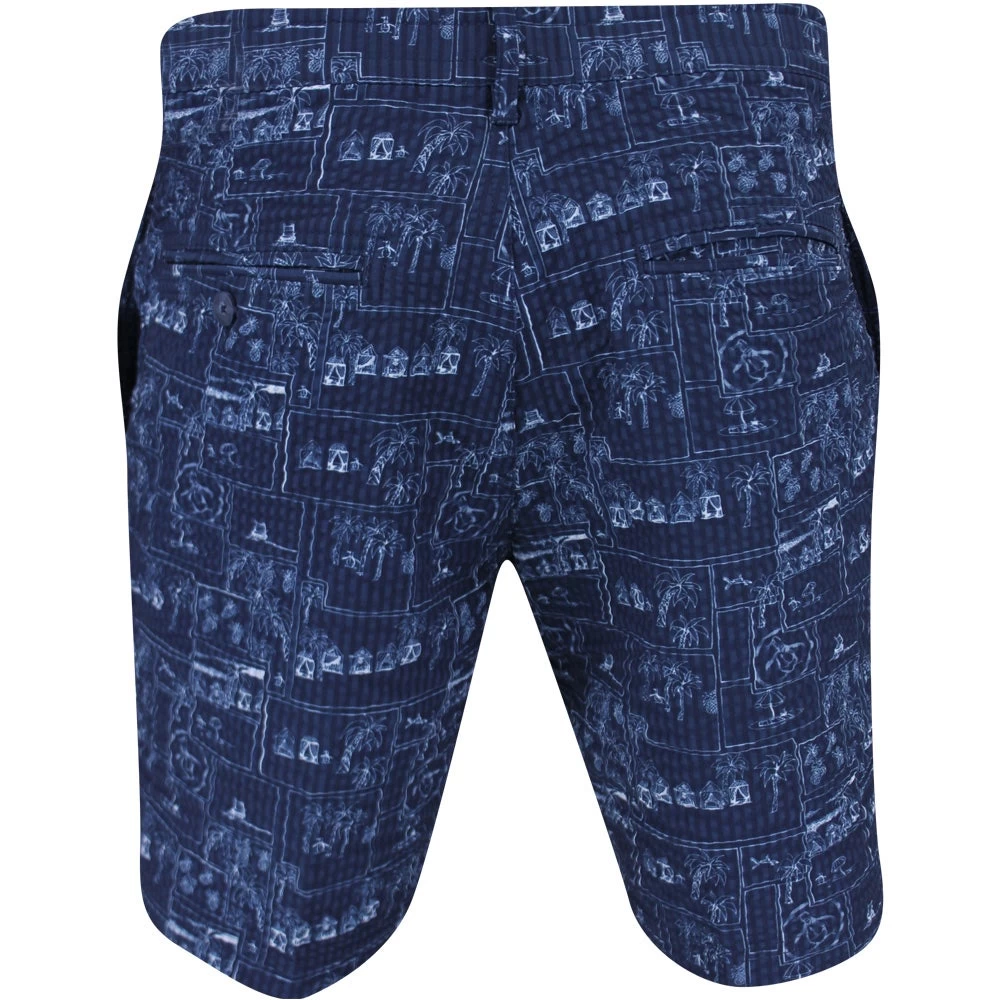 Original Penguin is one of the newest brands to arrive online at Golfposer & these eye catching golf shorts are one of the top picks from the latest SS23 collection. They make use of a stretchy seersucker fabric for complete comfort where you need it most, while the all over “Beach Club” print is especially stylish in this colour combination. A shorter 8 inch inseam provides a fashionable cut, while the signature Pete logo is located at the left thigh. Another great choice for completing your OPG looks this Summer.