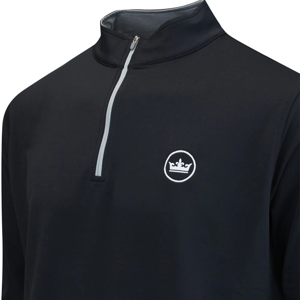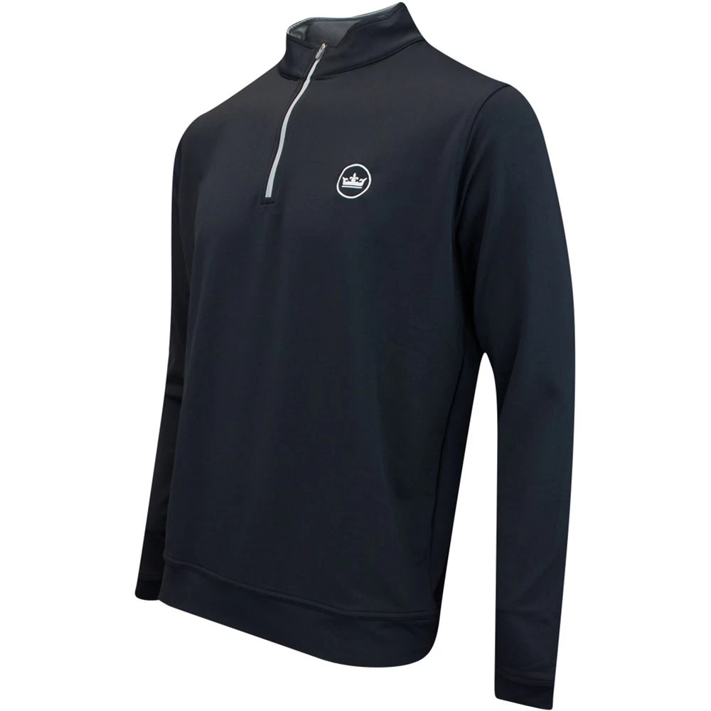 This performance mid layer sweater comes from the Peter Millar golf clothing collection and has been designed for wearing both on and off the course with ease. The soft jersey fabric has a high degree of stretch with moisture wicking capabilities, while the quarter zip silhouette is a timeless design which is perfect for layering your look. Warmth, comfort and performance are all assured – while you can also find the tour sized Peter Millar “Crown Seal” logo embroidered at the left chest. A tried & tested mid layer style which is both fashionable and timeless in this colour combination.