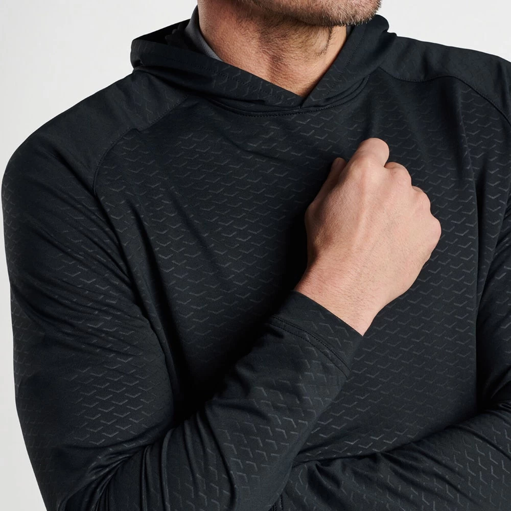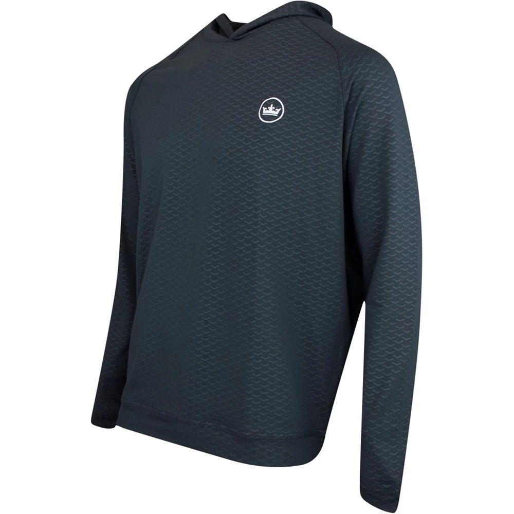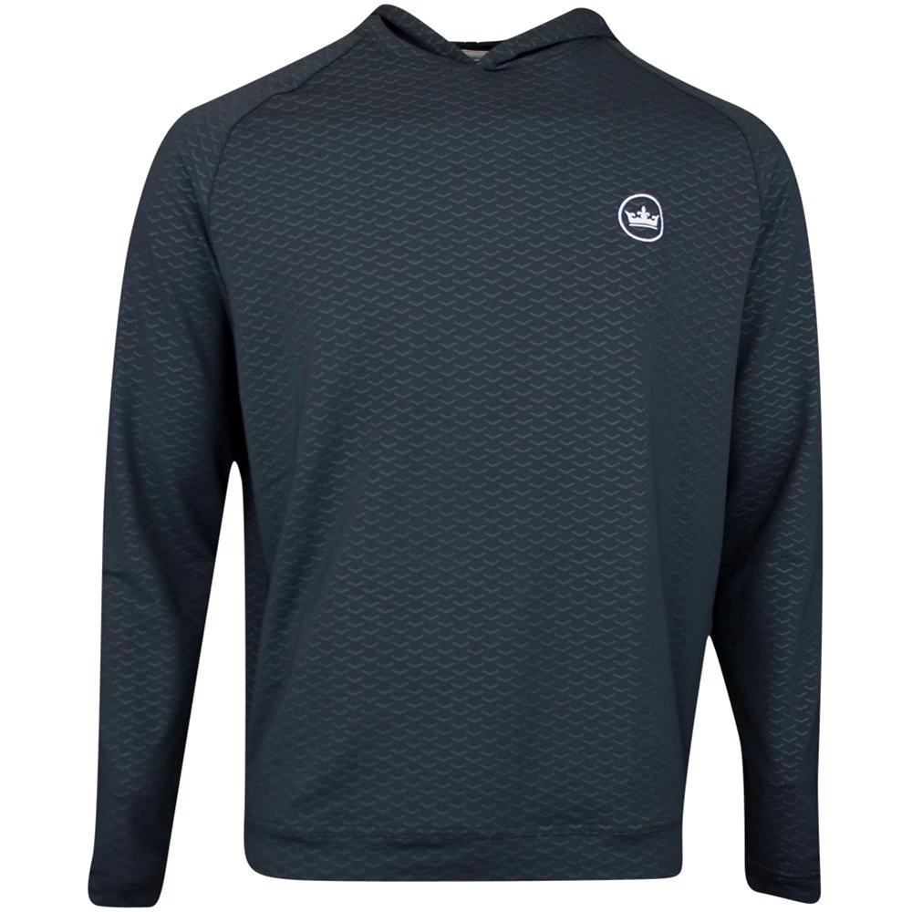 This performance mid layer hoodie comes from the Peter Millar golf clothing collection and has been designed for wearing both on and off the course with ease. The soft jersey fabric has a high degree of stretch with moisture wicking capabilities, while the hooded silhouette is right on trend and will be perfect for layering your sporty looks this season. Warmth, comfort and performance are all assured with this tried and tested fabrication from Peter Millar – sure to be popular with the tour sized Crown Logo at the left chest.