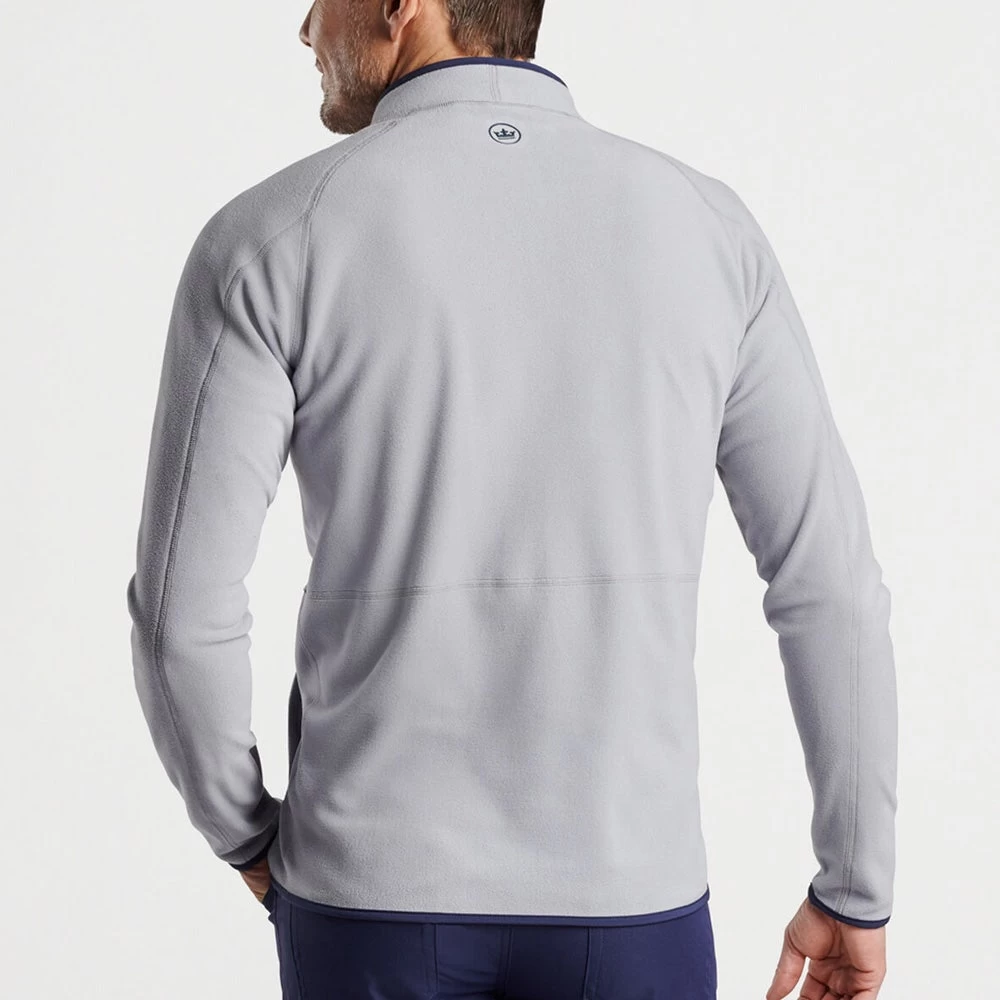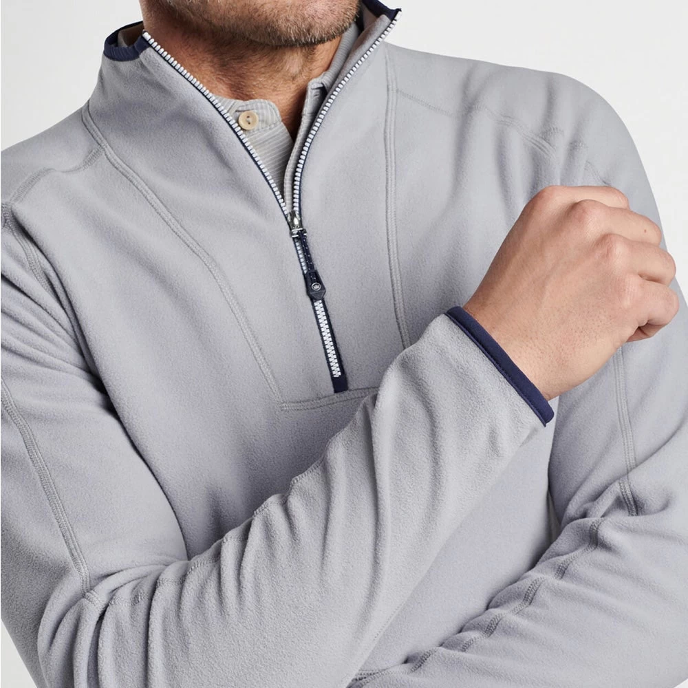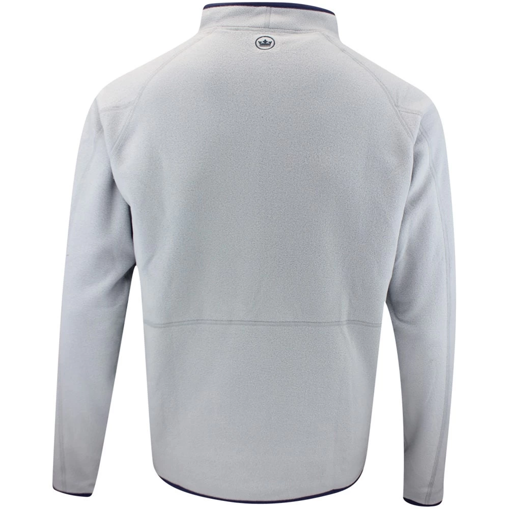 This performance mid layer fleece comes from the Peter Millar golf clothing collection and is sure to become your new favourite for wearing in cooler conditions this season. The soft and flexible micro fleece fabric has an ultra soft handle & provides increased warmth retention without adding bulk, while you can also find an embroidered Peter Millar “Crown Seal” tour sized logo at the left chest. Elasticated cuffs & hemline provide an ideal fit, while the two front hand pockets add convenience. Warmth, comfort and performance are all assured with this stylish mid layer pullover from Peter Millar.