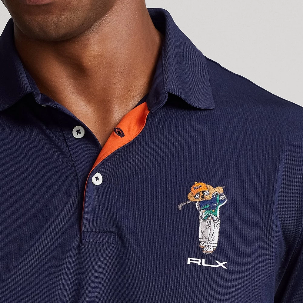 We love seeing the iconic “POLO Bear” logo within the Ralph Lauren golf wear line up – a character which was first introduced by the brand in 1991. It has taken on many guises over the years but this time the POLO bear looks like one of the coolest golfers around – posing with his aviator sunglasses, green RL jacket, bright white pants & orange cap in a typically preppy RL fashion. The polo shirt itself makes use of a new & improved “Airtech” performance pique fabrication from the RLX collection, while the added stretch ensures a maximum range of motion is provided. Rib knit sleeve welts provide a great fit, while the hem vents allow this shirt to be worn tucked or untucked on or off the golf course. Complete with RLX branding beneath the Bear Logo – another welcome styling update for AW23.